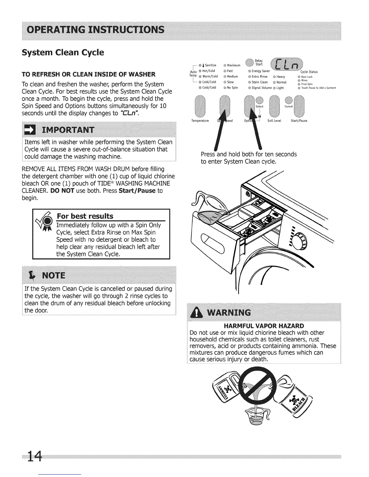 Clean Cycle. For best results use the System Clean Cycle