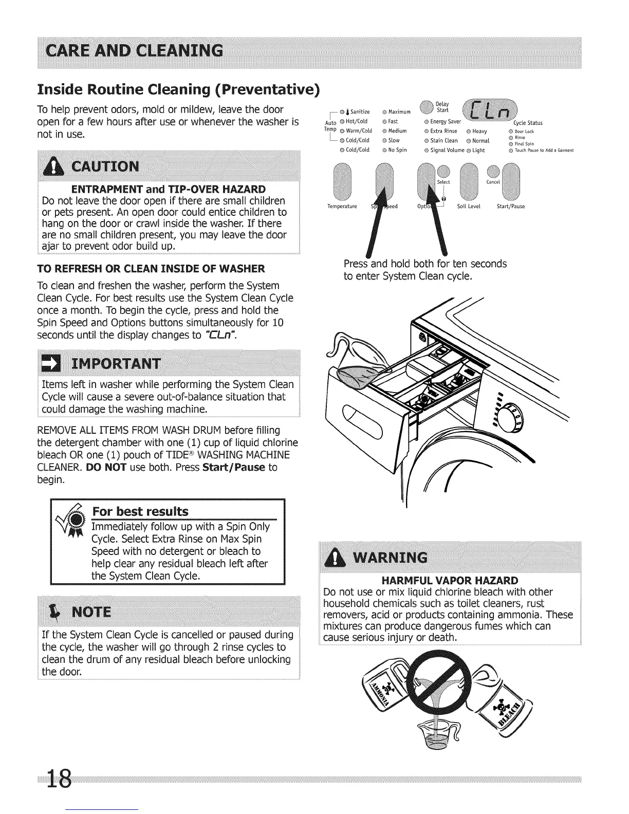Clean Cycle. For best results use the System Clean Cycle