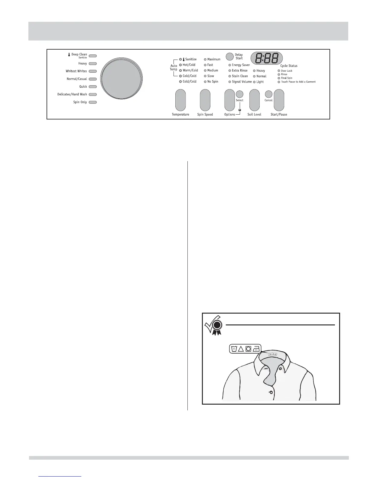 This manual covers many models and not all cycles, options, or features listed are available