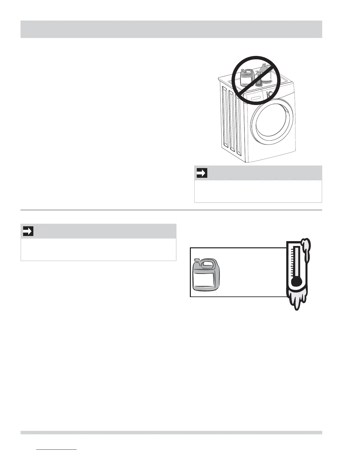 Do not store or place laundry products on top of