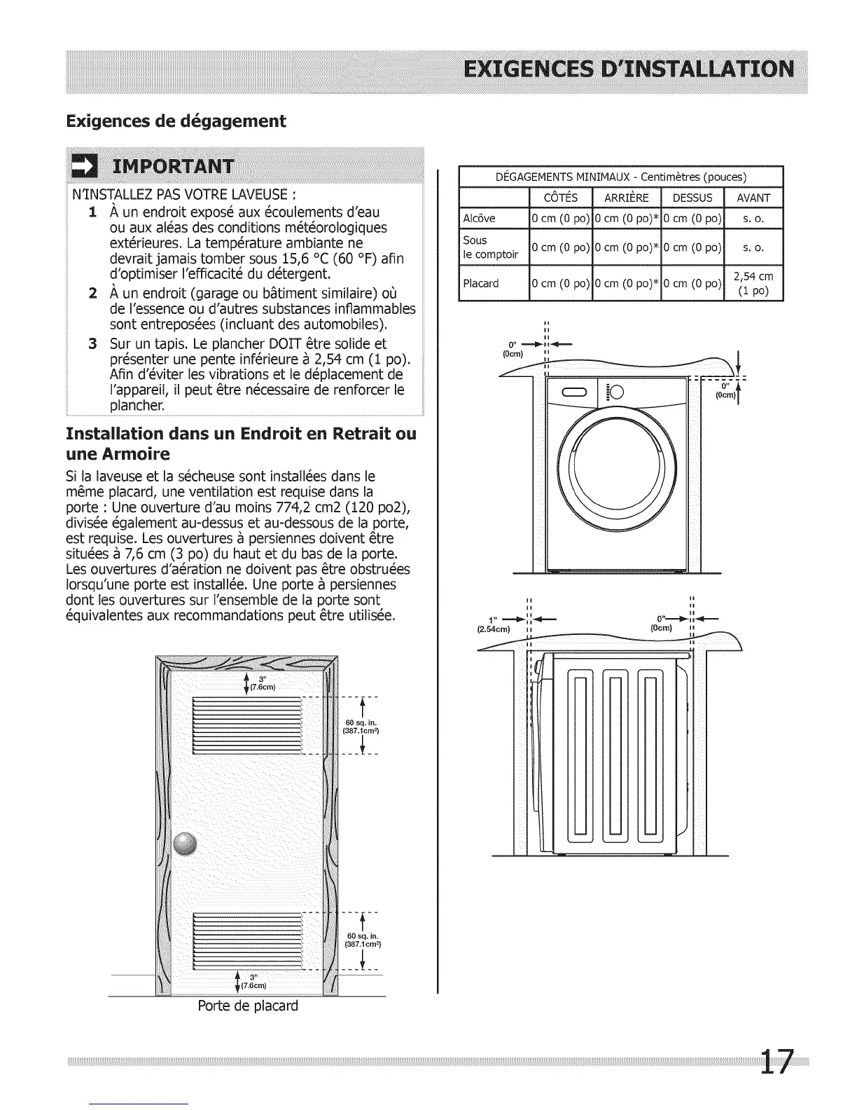 Si la laveuse et la s6cheuse sont install6es dans le