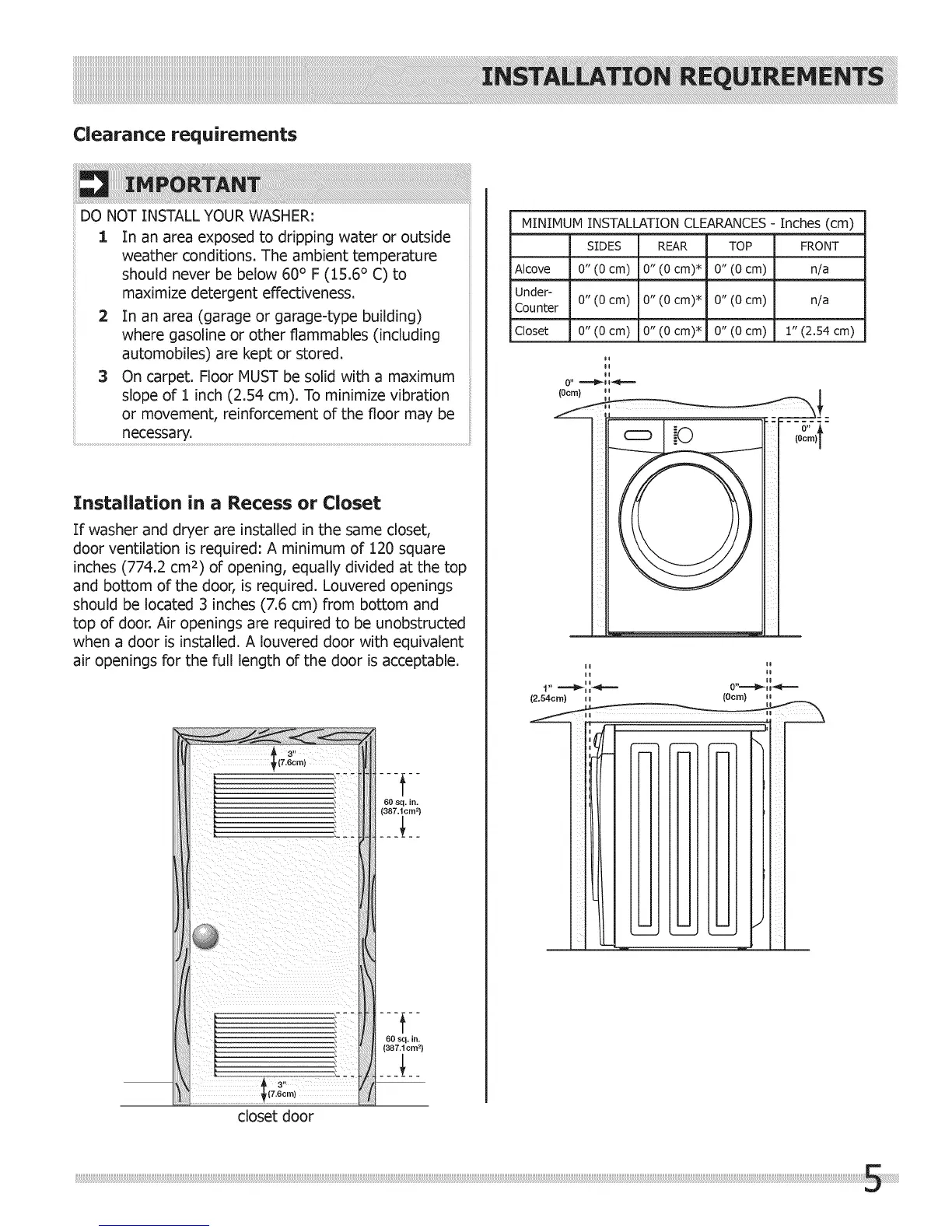 Closet O" (0 cm) O" (0 cm) _ O" (0 cm) 1" (2.54 cm)