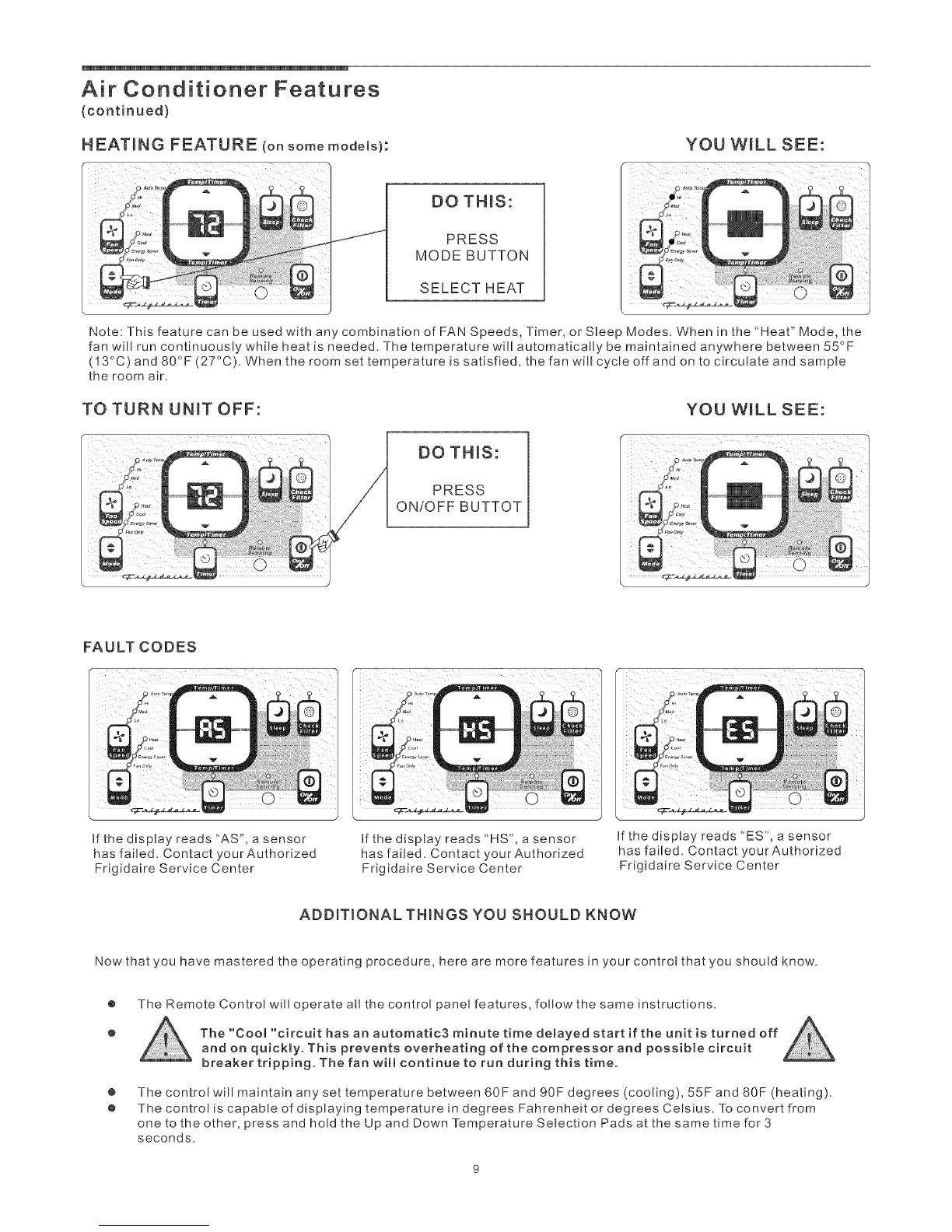 Note: This feature can be used with any combination of FAN Speeds, Timer, or Sleep Modes. When in the "Heat" Mode, the