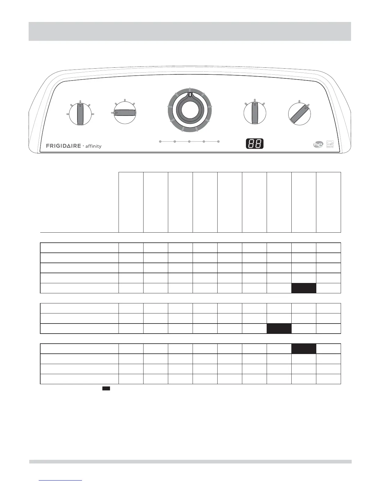 Washer Settings Chart