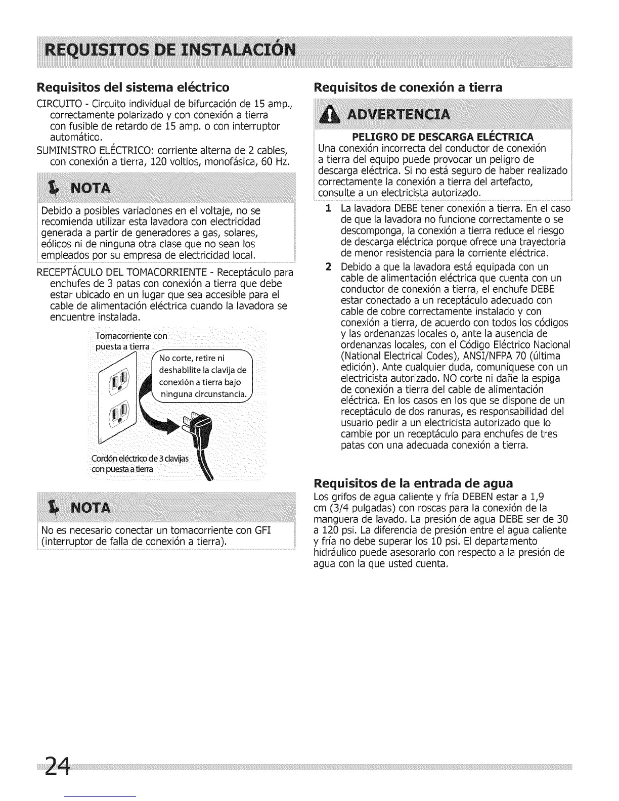 1 La lavadora DEBEtener conexi6n a tierra. En el caso