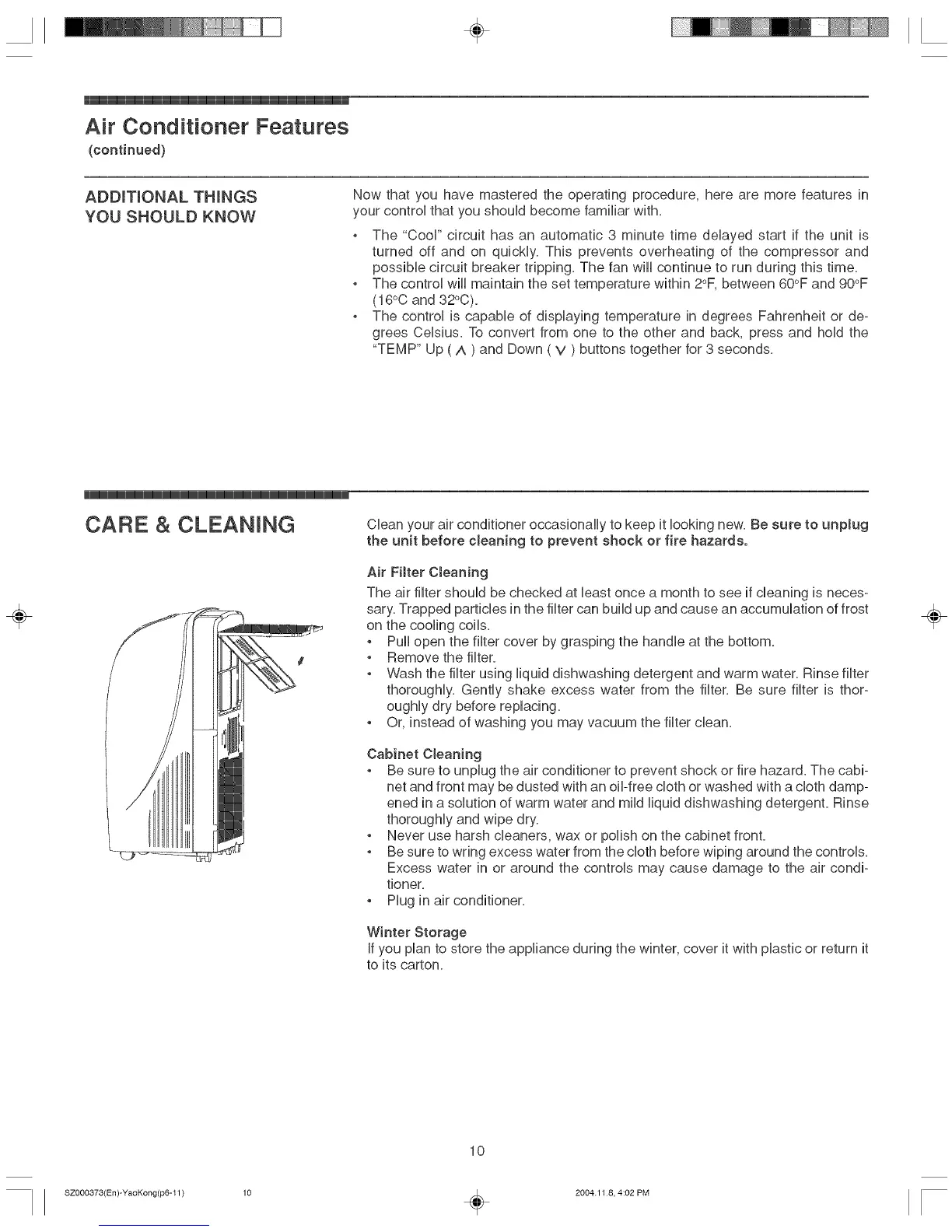 CARE & CLEANmNG Ciean your air conditioner occasionaliy to keep it Hookingnew. Be sure to unplug