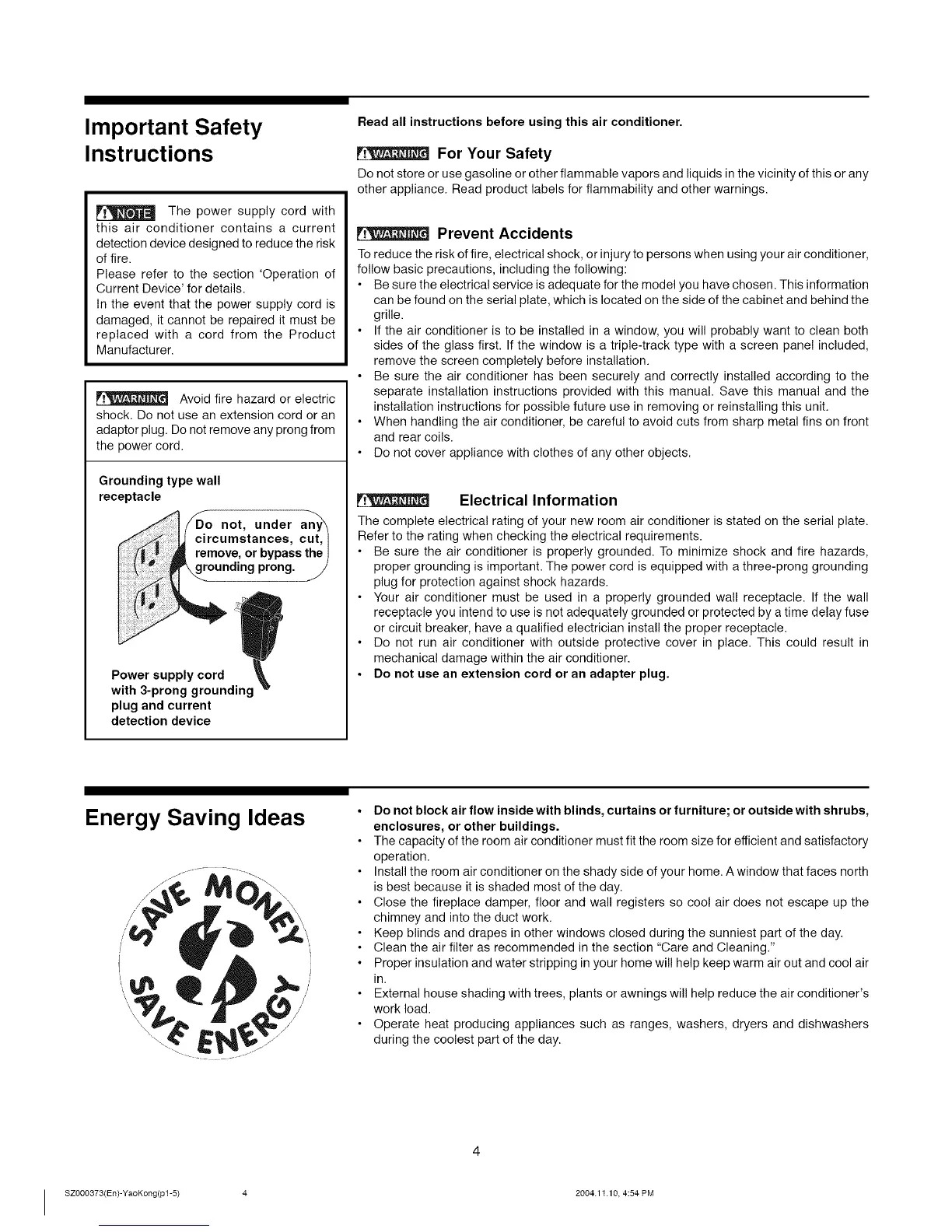 The complete electrical rating of your new room air conditioner is stated on the serial plate.