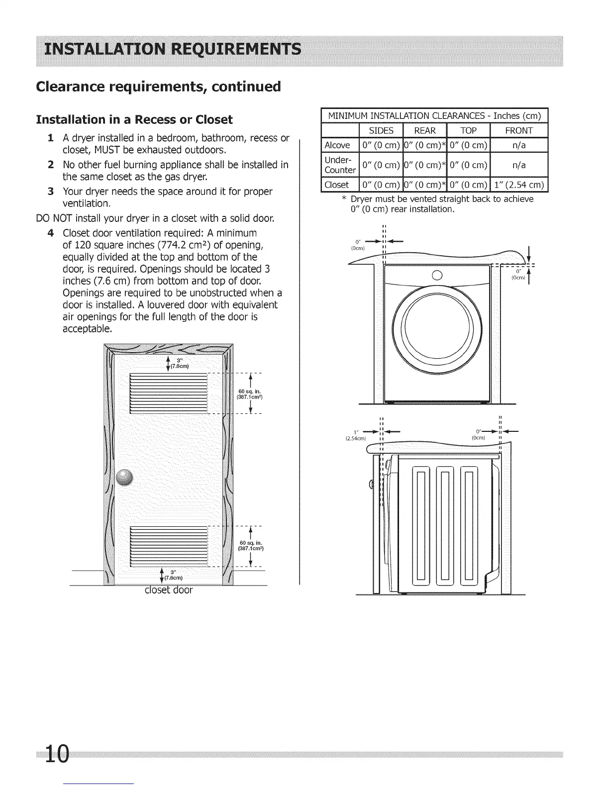 DO NOT install your dryer in a closet with a solid door.