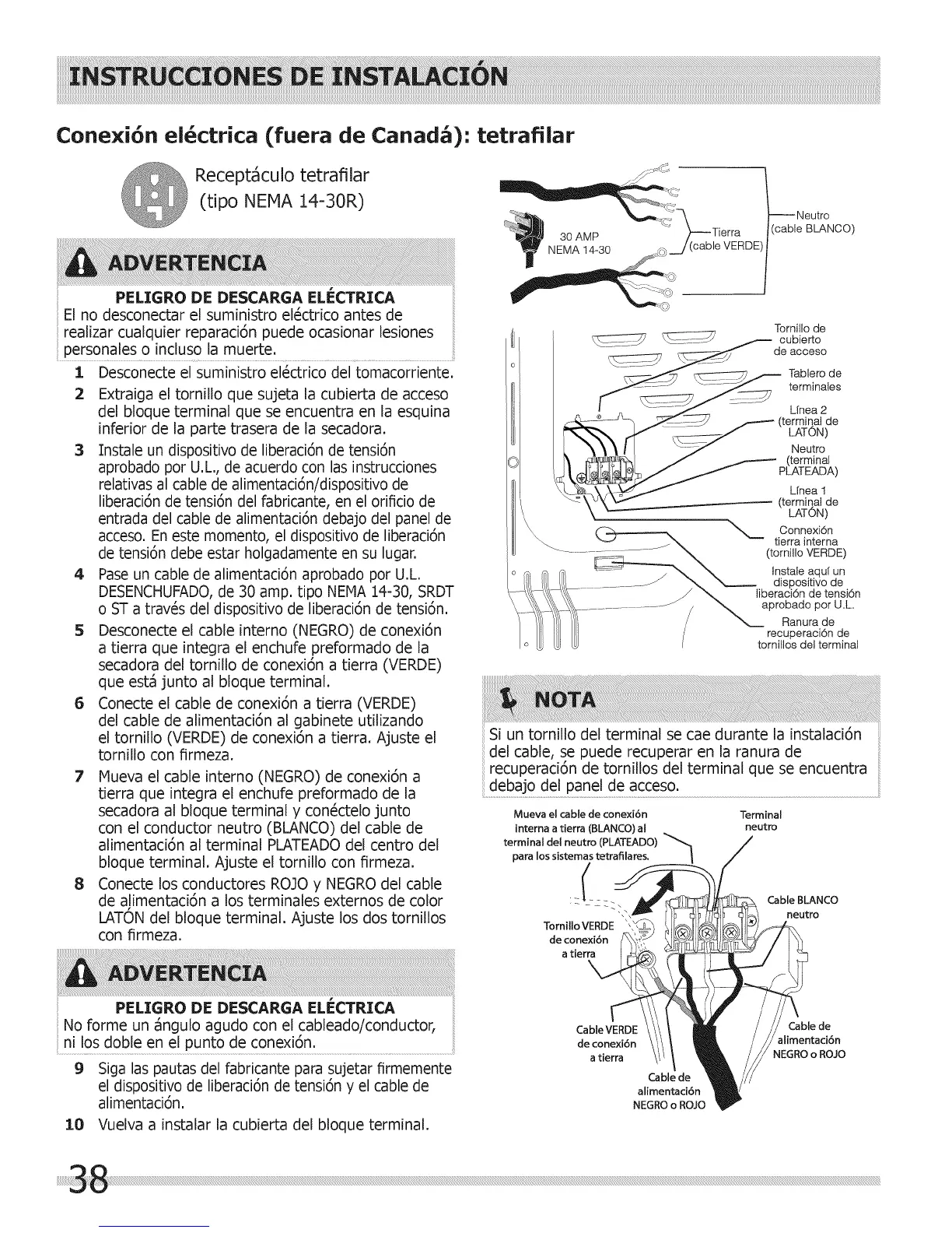 Conexi6n ei ctrica (fuera de Canada): tetrafiiar