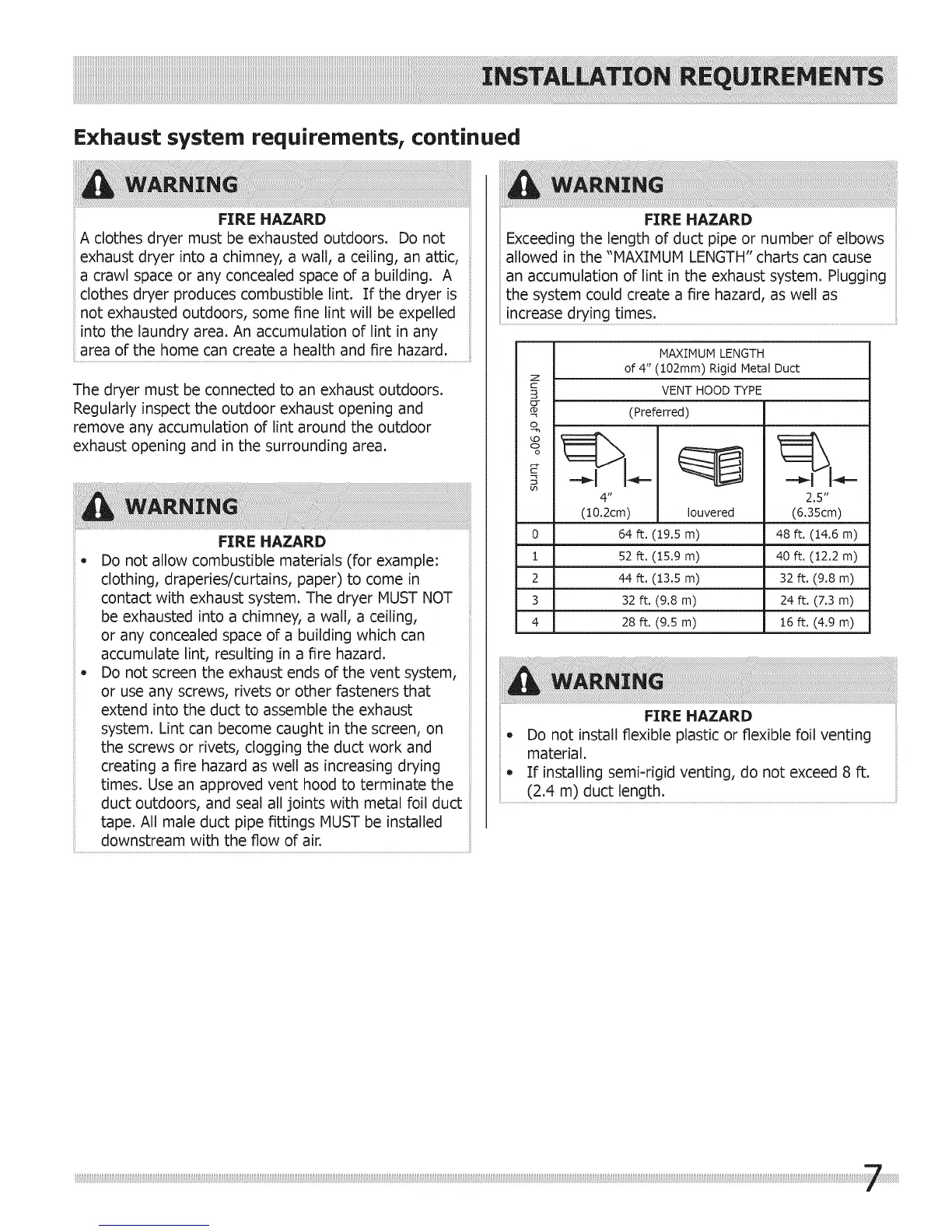 - If installing semi-rigid venting, do not exceed 8 ft.