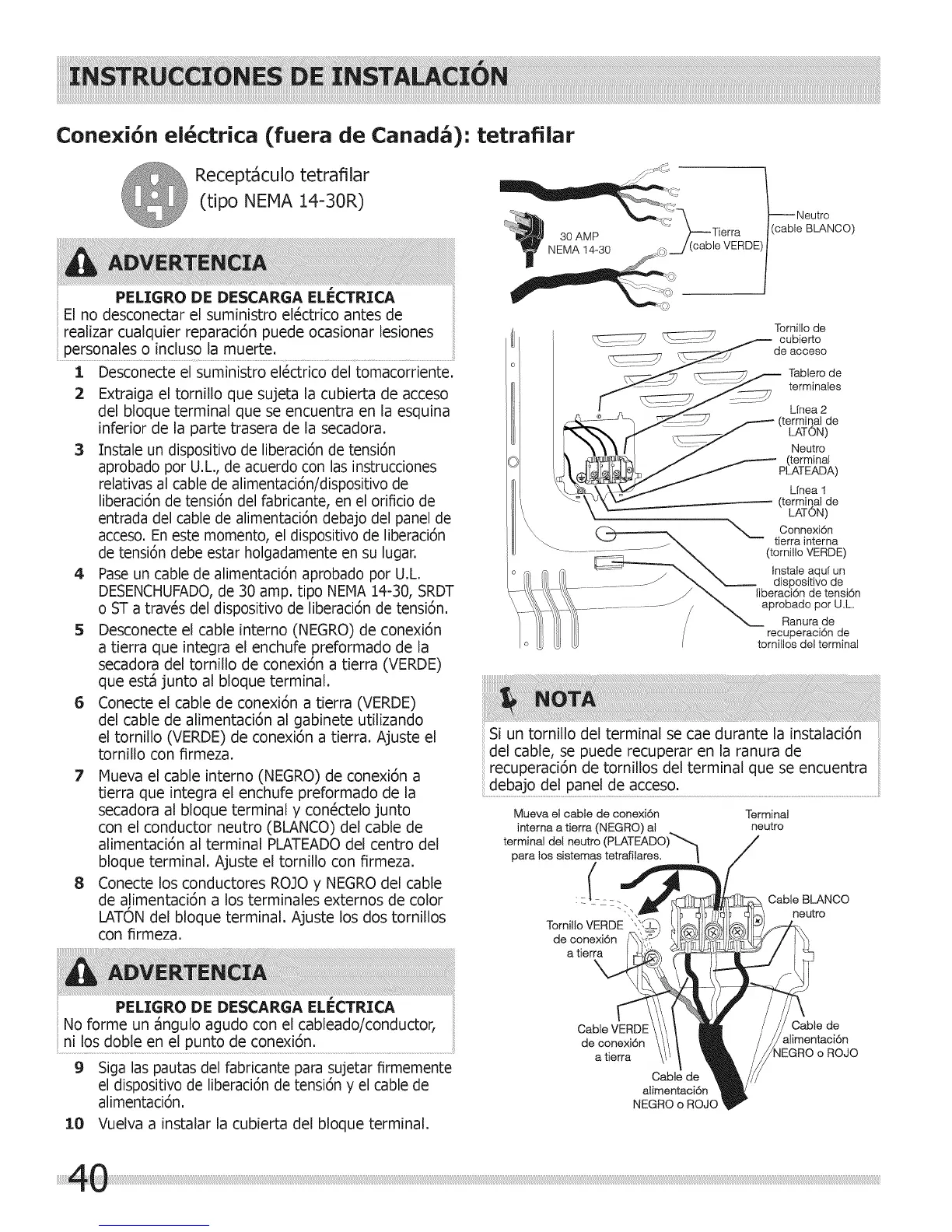 e! tornillo (VERDE) de conexi6n a tierra. Ajuste el
