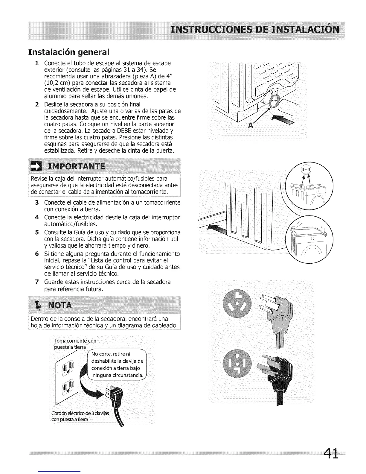 7 Guarde estas instrucciones cerca de la secadora