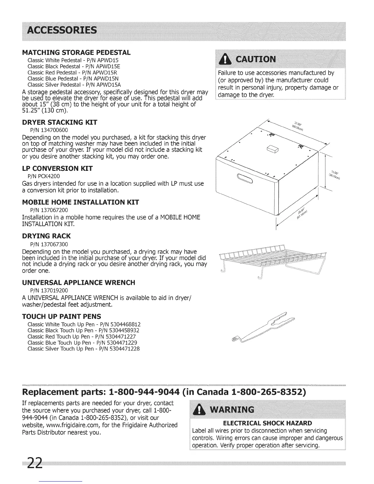 A UNIVERSAL APPLIANCE WRENCH is available to aid in dryer/