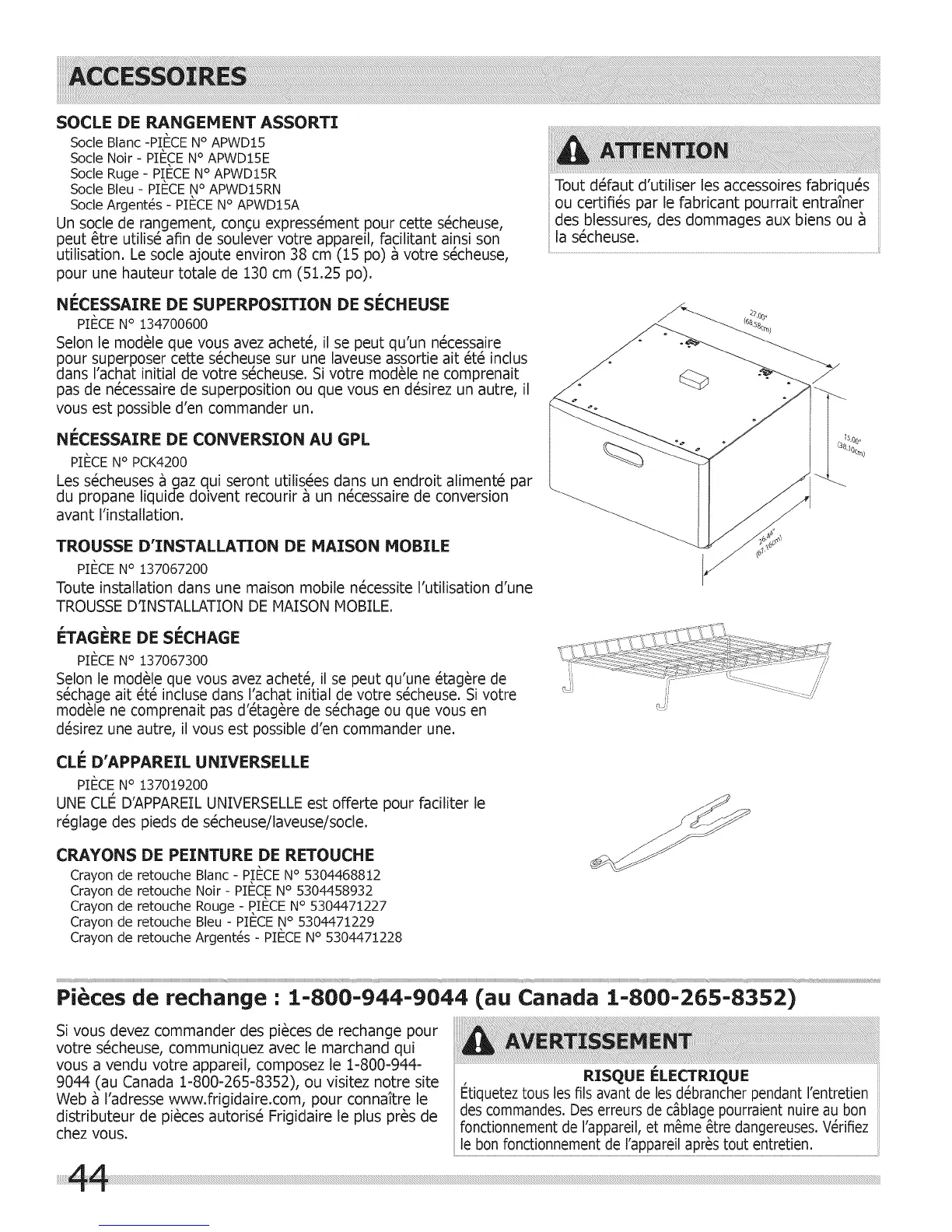 Pi ces de rechange : 1.-800-944-9044 (au Canada 1.-800-265-8352)