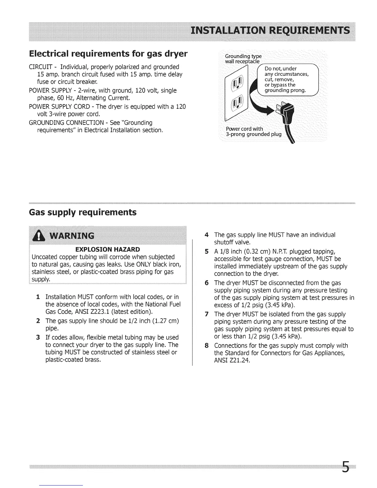 Electrical requirements for gas dryer