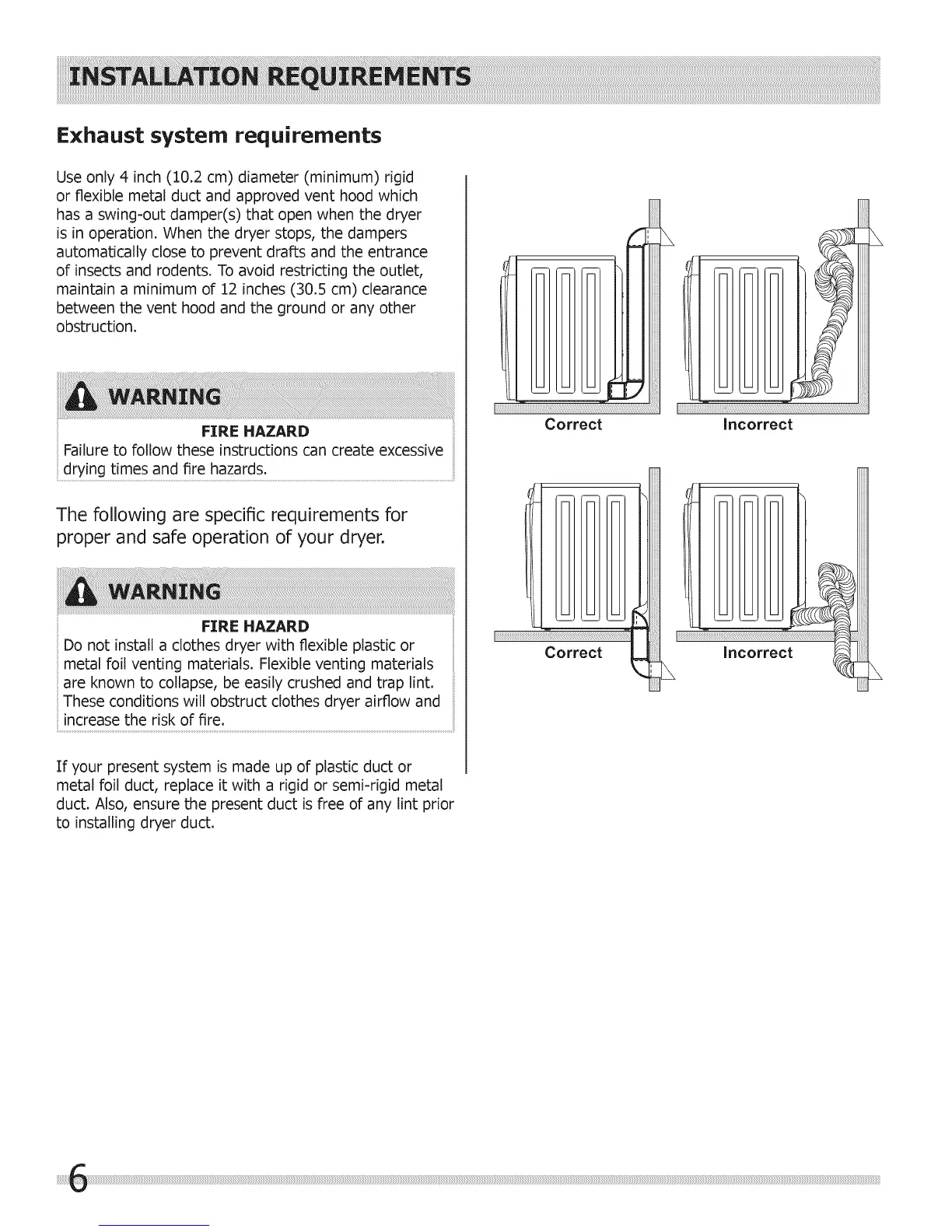 Use only 4 inch (10.2 cm) diameter (minimum) rigid