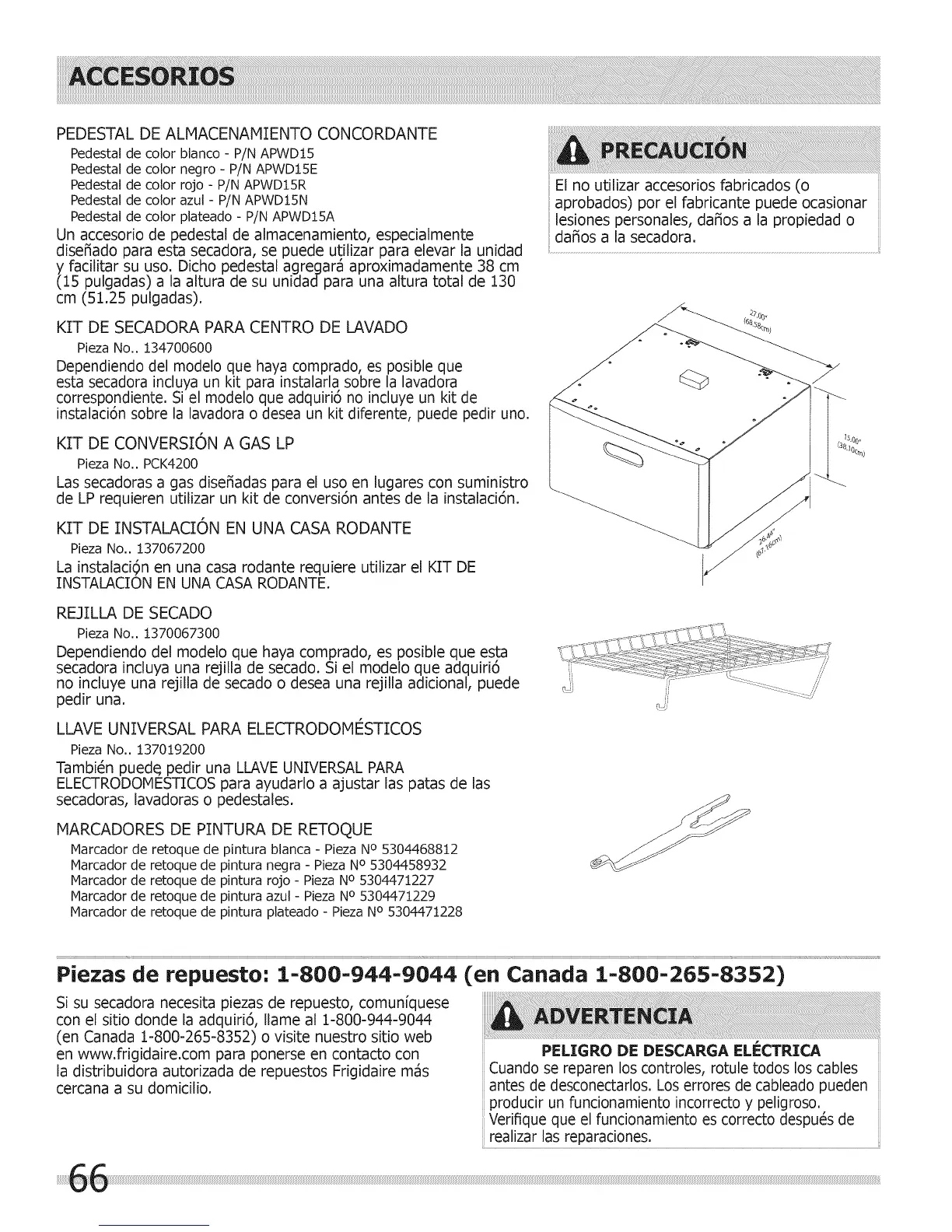 Piezas de repuesto: 1-800=944-9044 (en Canada 1-800-265-8352)
