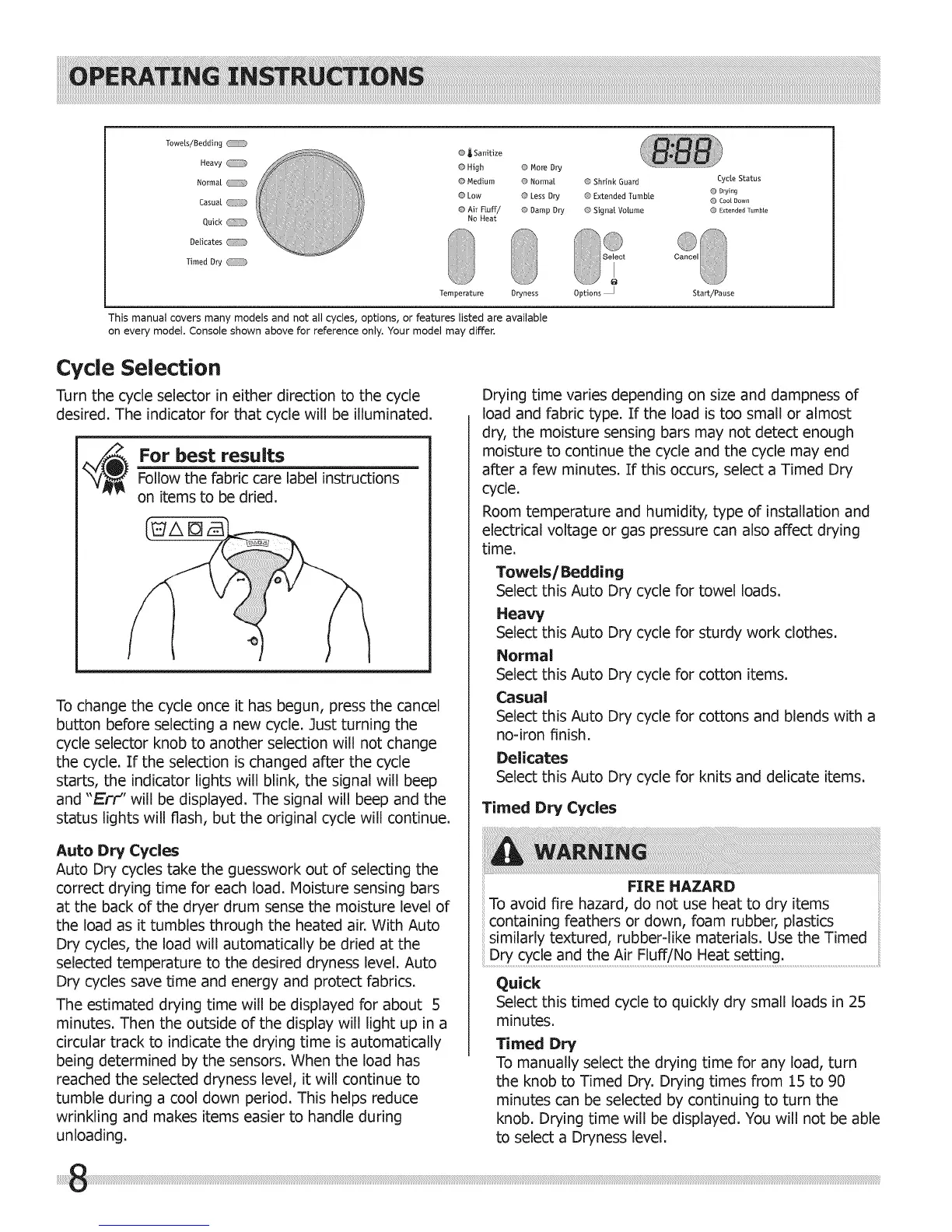 This manual covers many models and not all cycles, options, or features listed are available