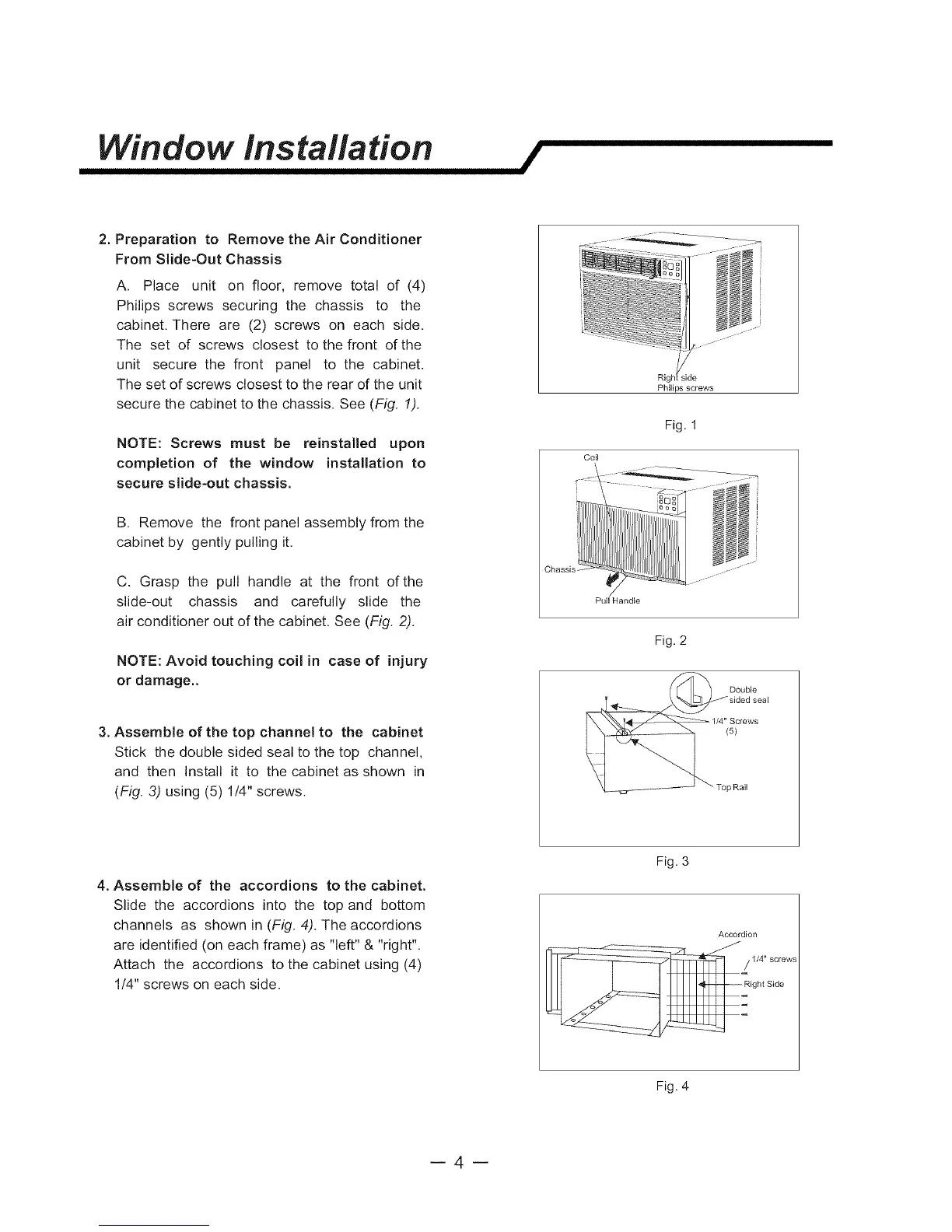 air conditioner out of the cabinet. See (Fig. 2).