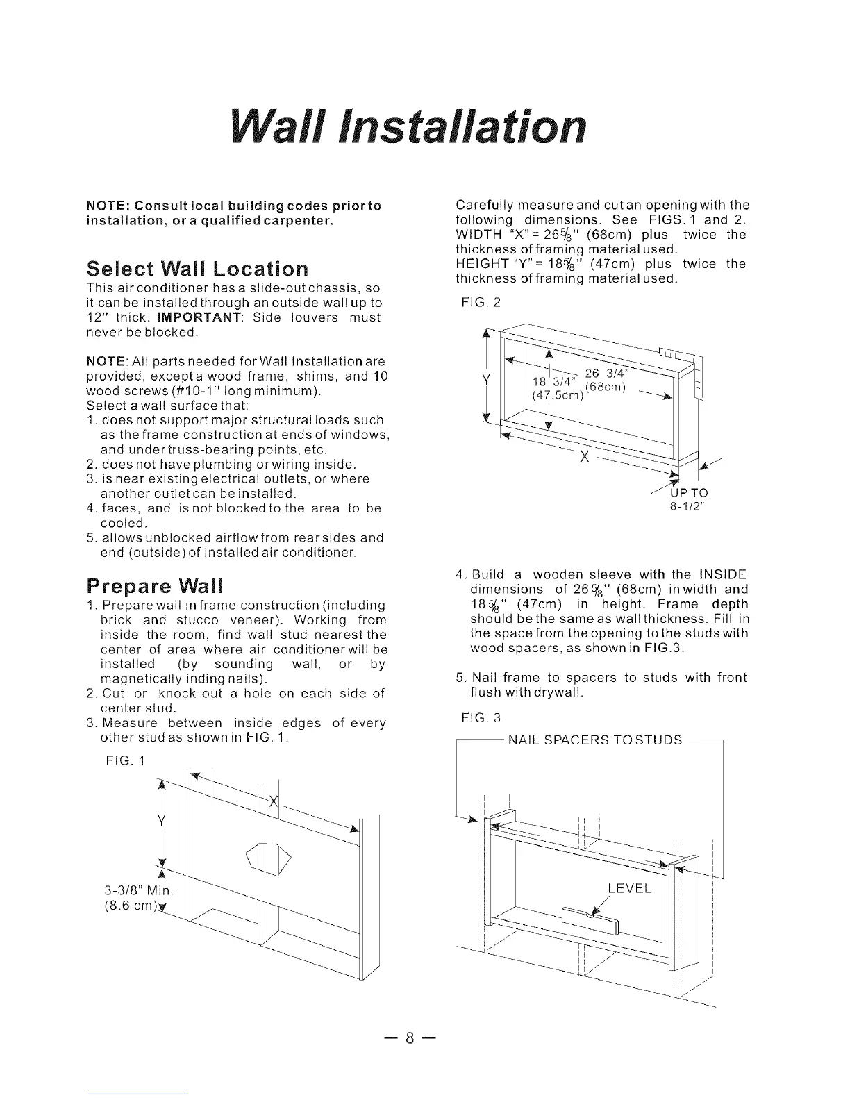 NOTE: All parts needed forWall Installation are