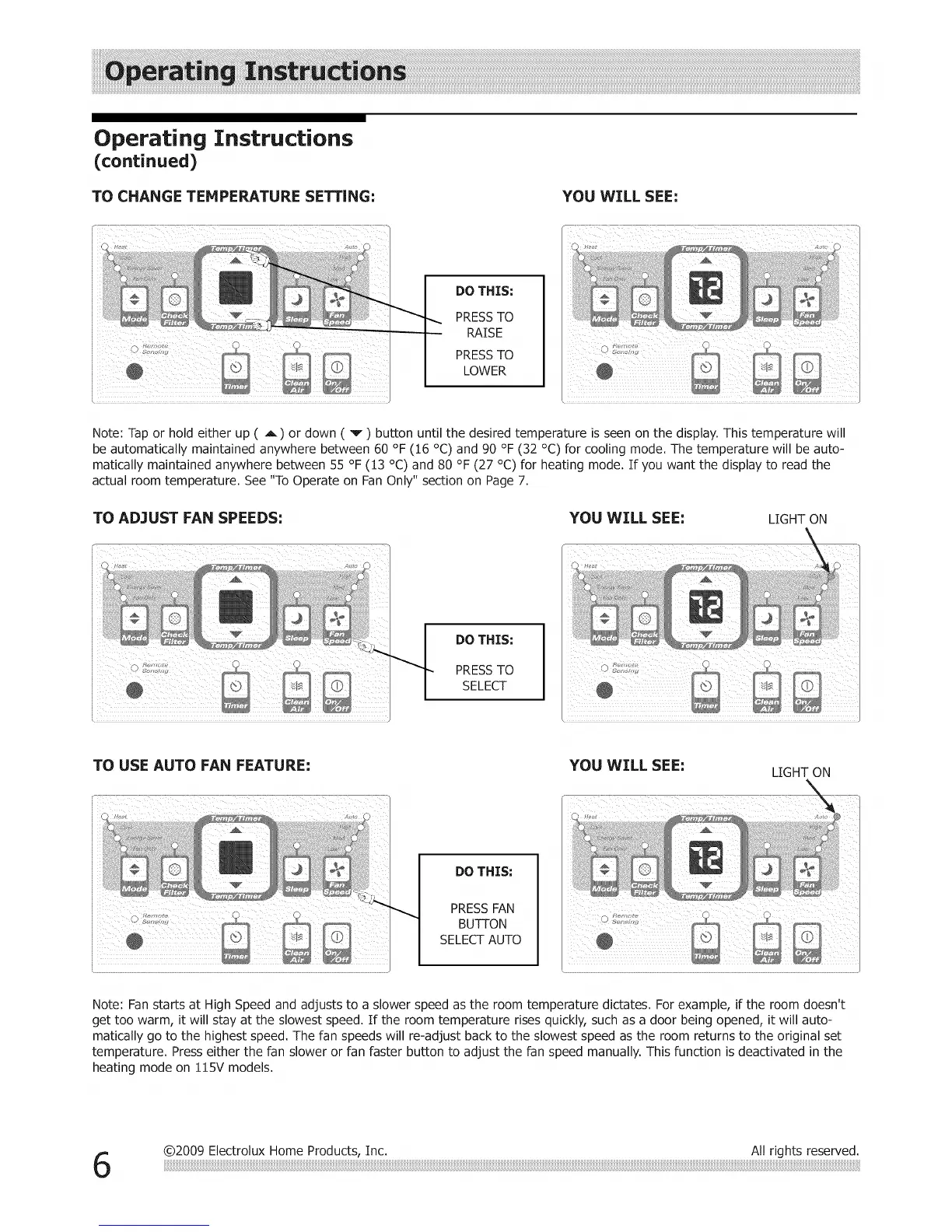 6 ©2009 E!ec!ro!ux Home Products, Inc: AH r!gh!s reserved.