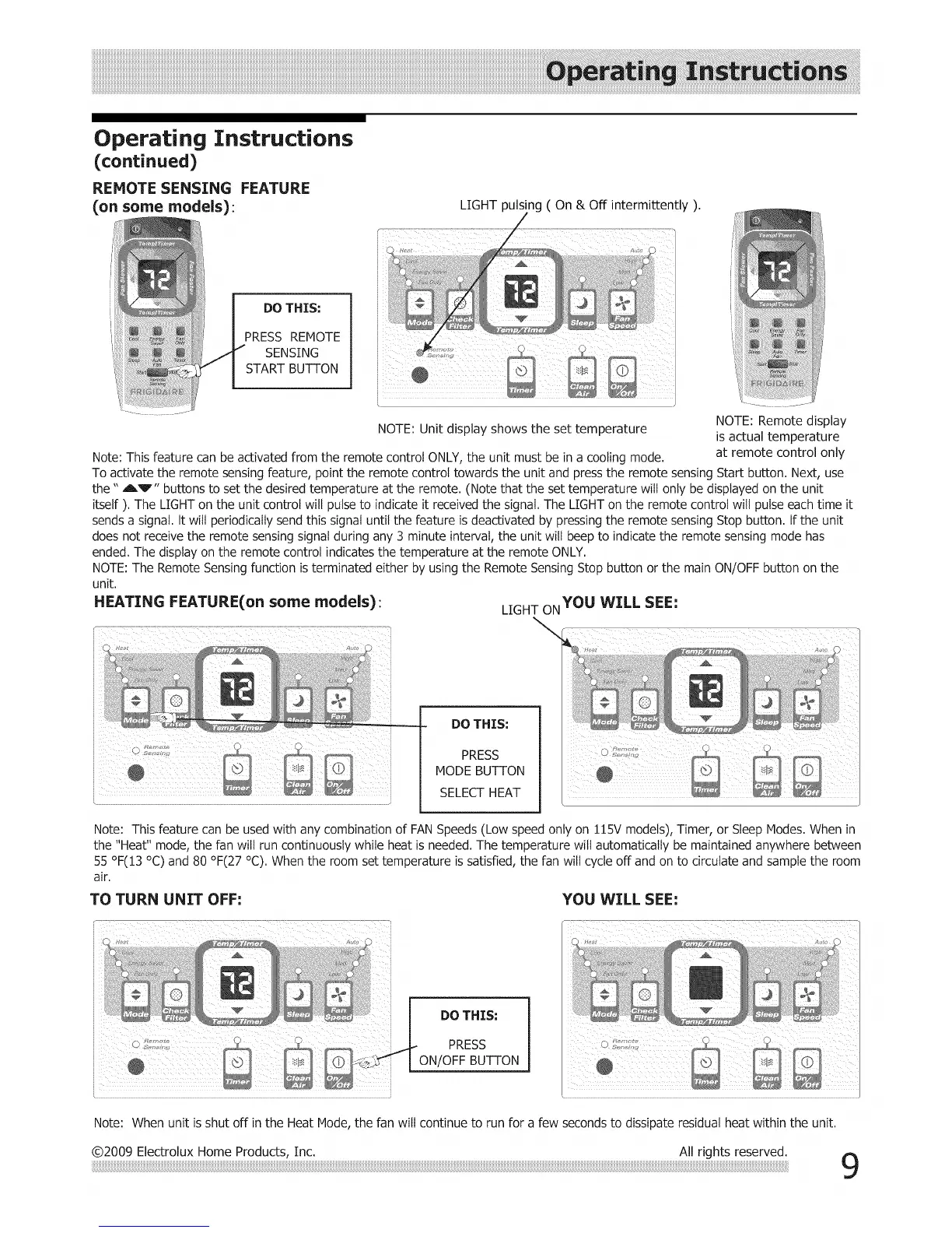 @2009 Electrolux Home Products, Inc. All rights reserved.