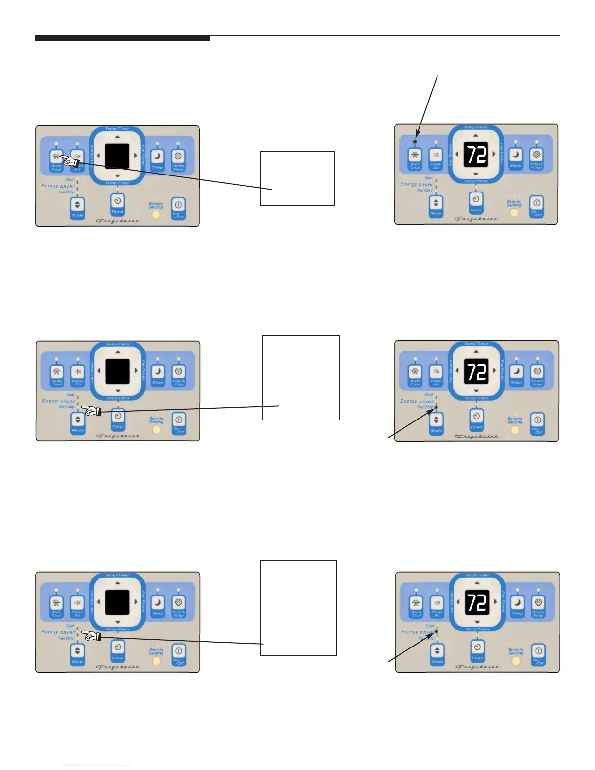 Note: Fan speed starts at HI and adjusts to a slower and slower speed as the room temperature indictates. For example, if the