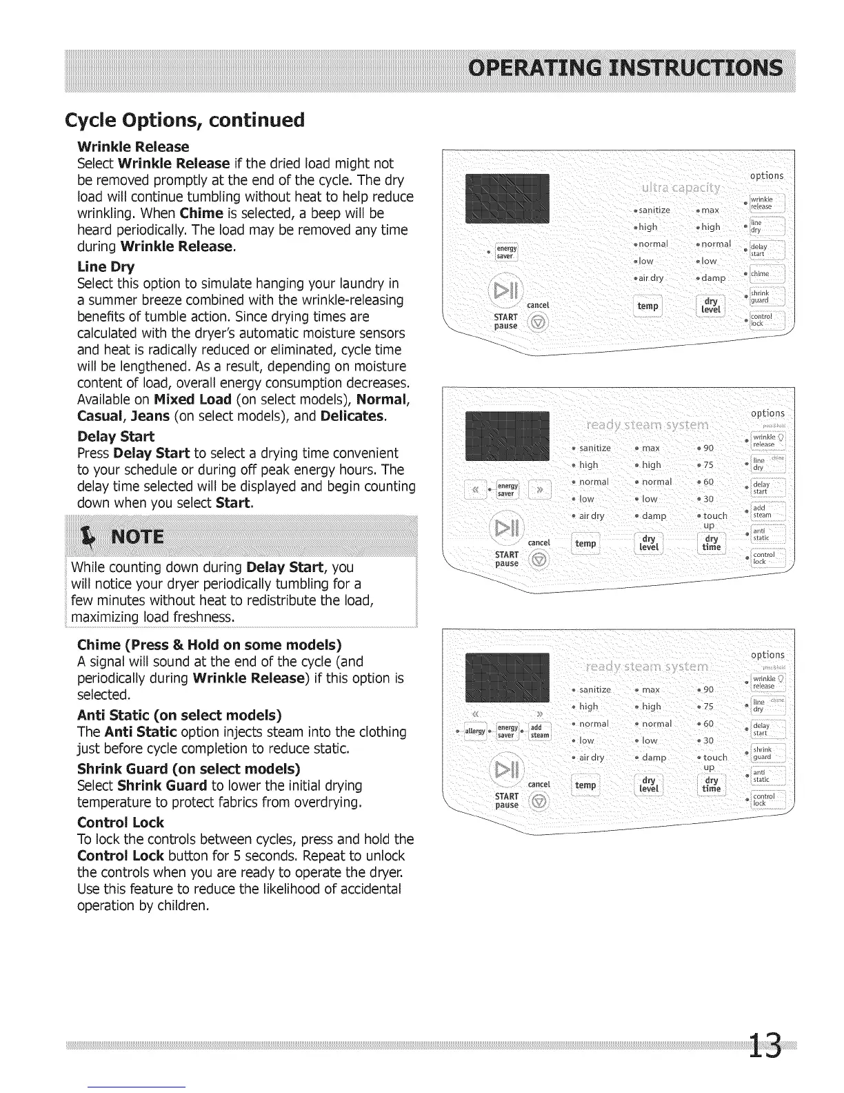 Select Wrinkle Release if the dried load might not