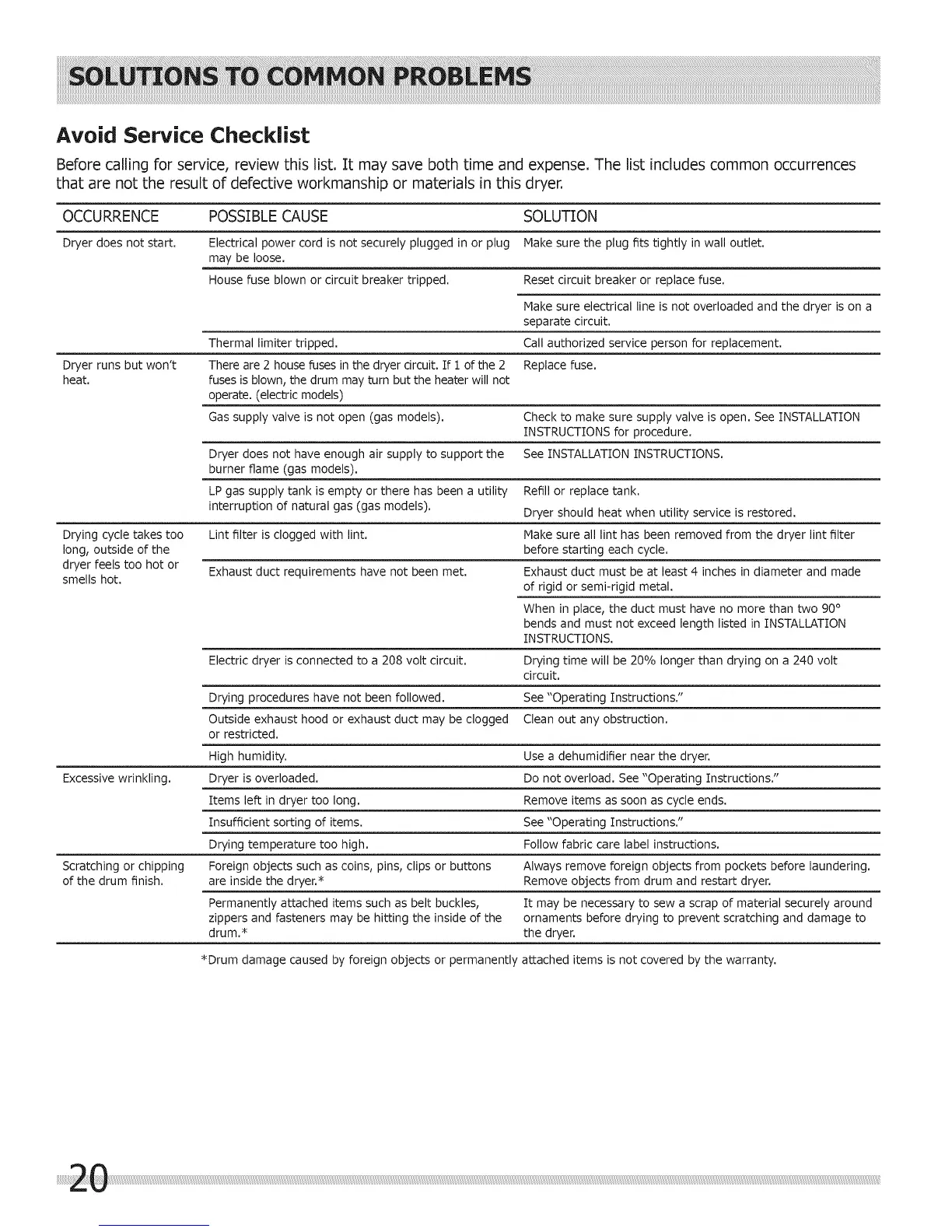 of the drum finish, are inside the dryer.* Remove objects from drum and restart dryer.