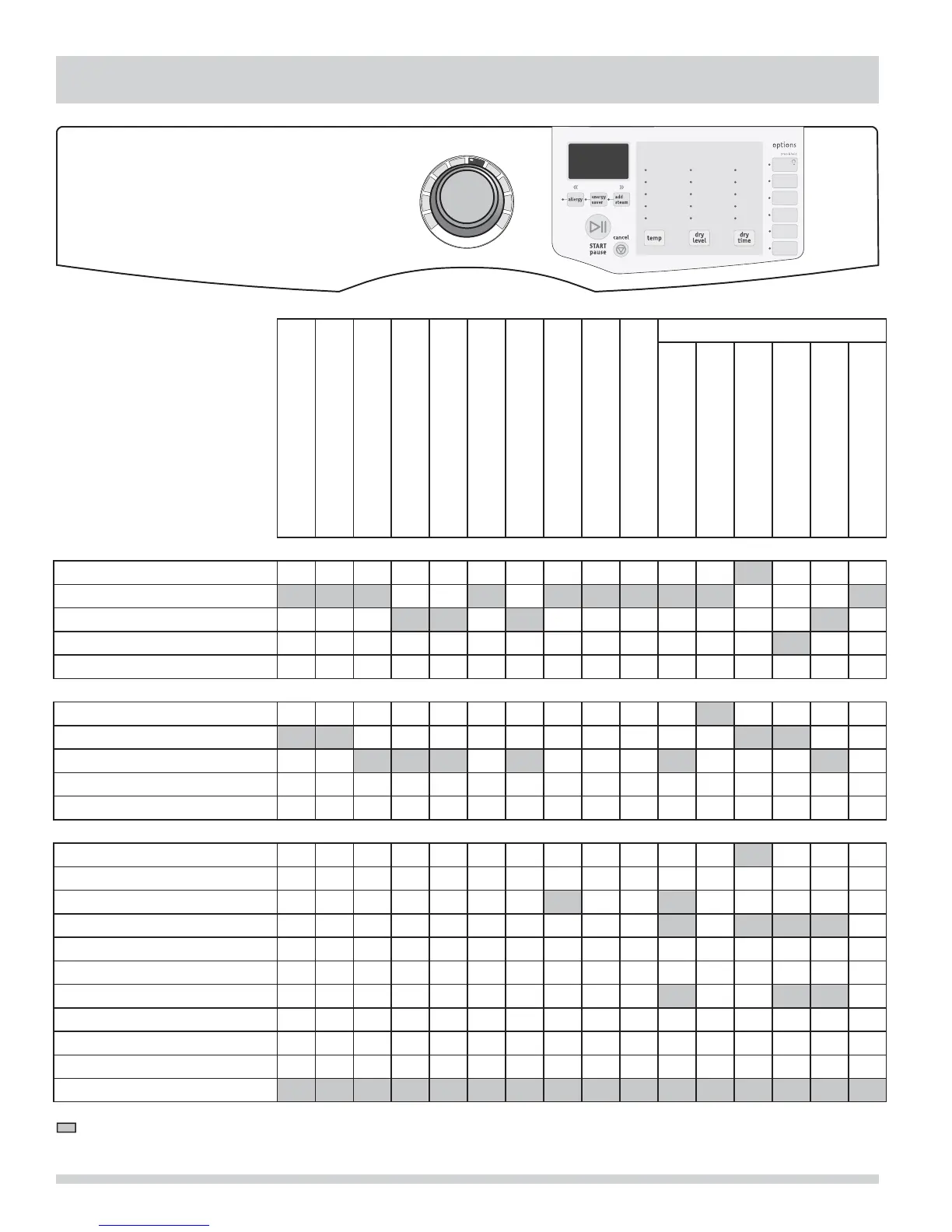 Estos niveles de temperatura y secado y estas opciones están disponibles con los siguientes ciclos: