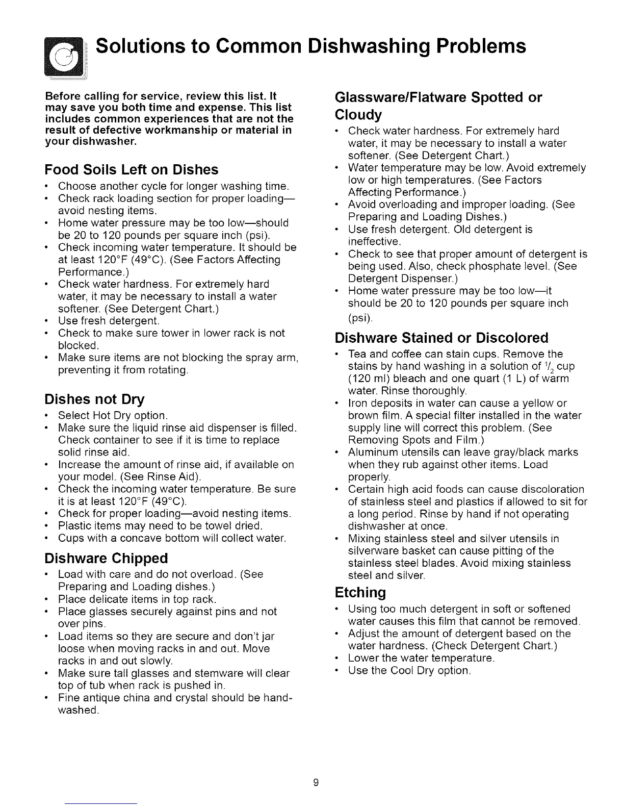Before calling for service, review this list. It