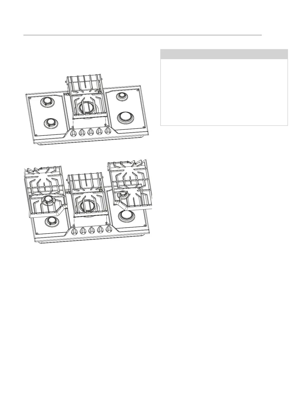 To install burner grates, place the grates fl at-side