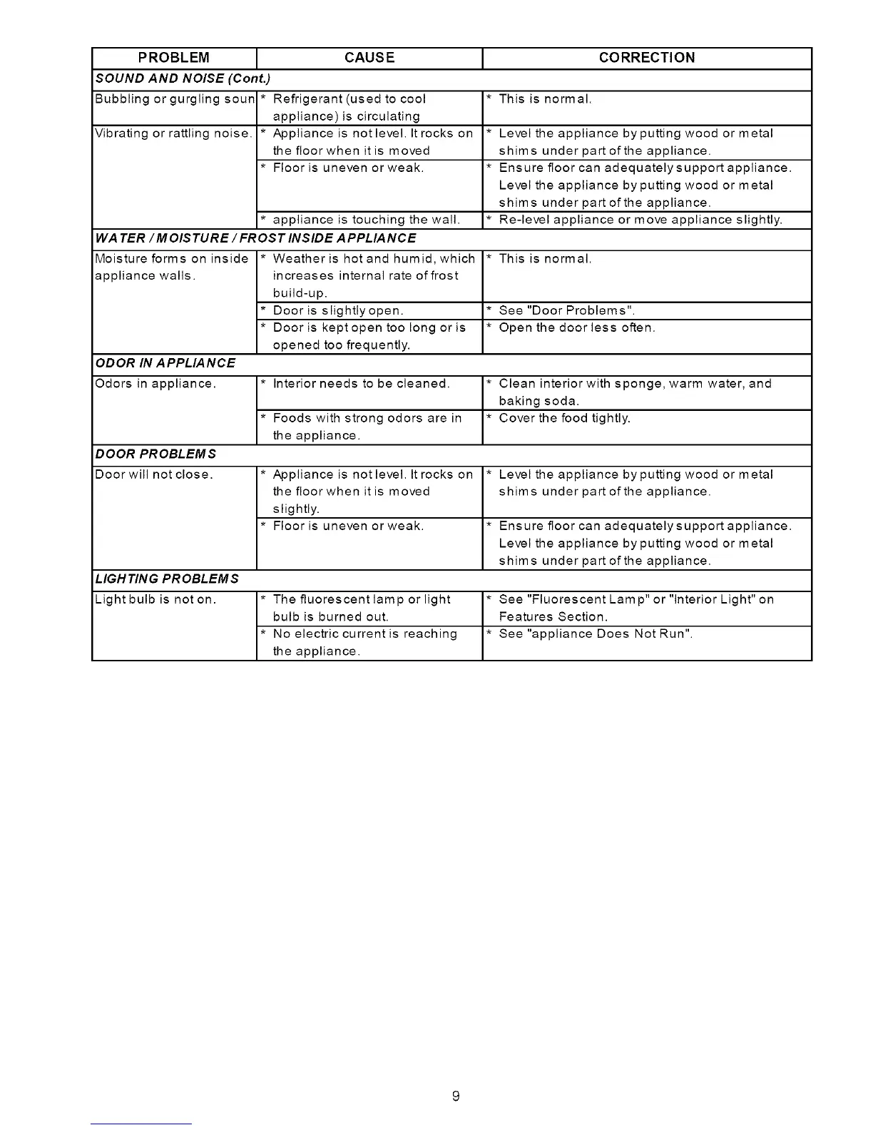 WATER/M OISTURE / FROST INSIDE A PPLIANCE