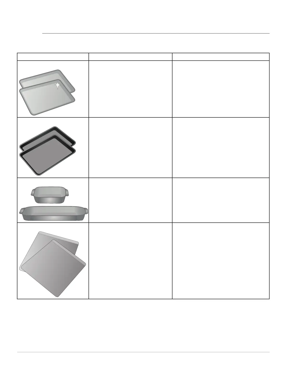 The material of bakeware a ects how evenly and quickly it transfers heat from the pan to the food.