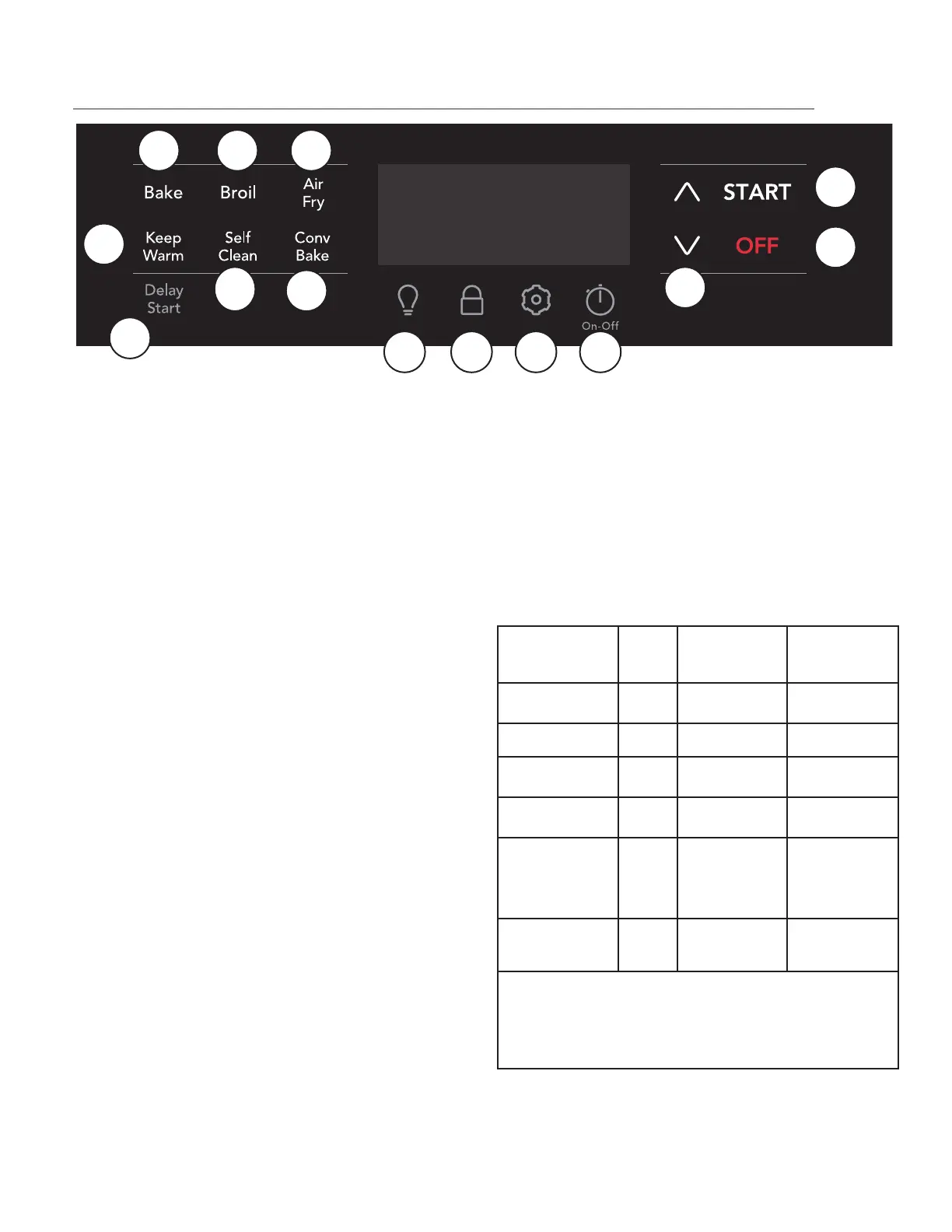 14. Arrêt (OFF) désactive toutes les fonctions du four.
