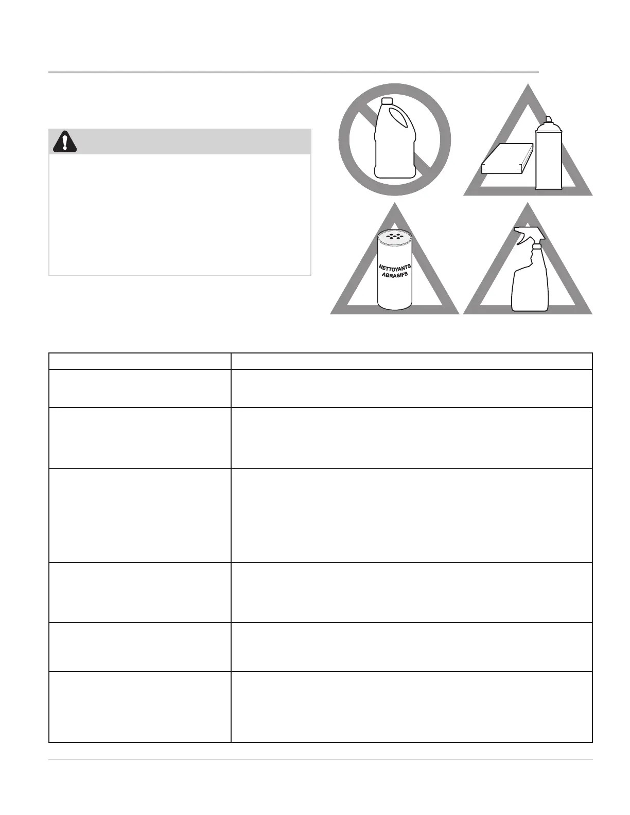 nant des abrasifs, des chlorures, du chlore ou de l'ammoniaque.