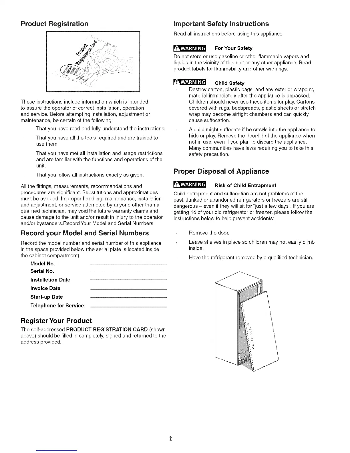 and/or bystanders.Record Your Model and Serial Numbers