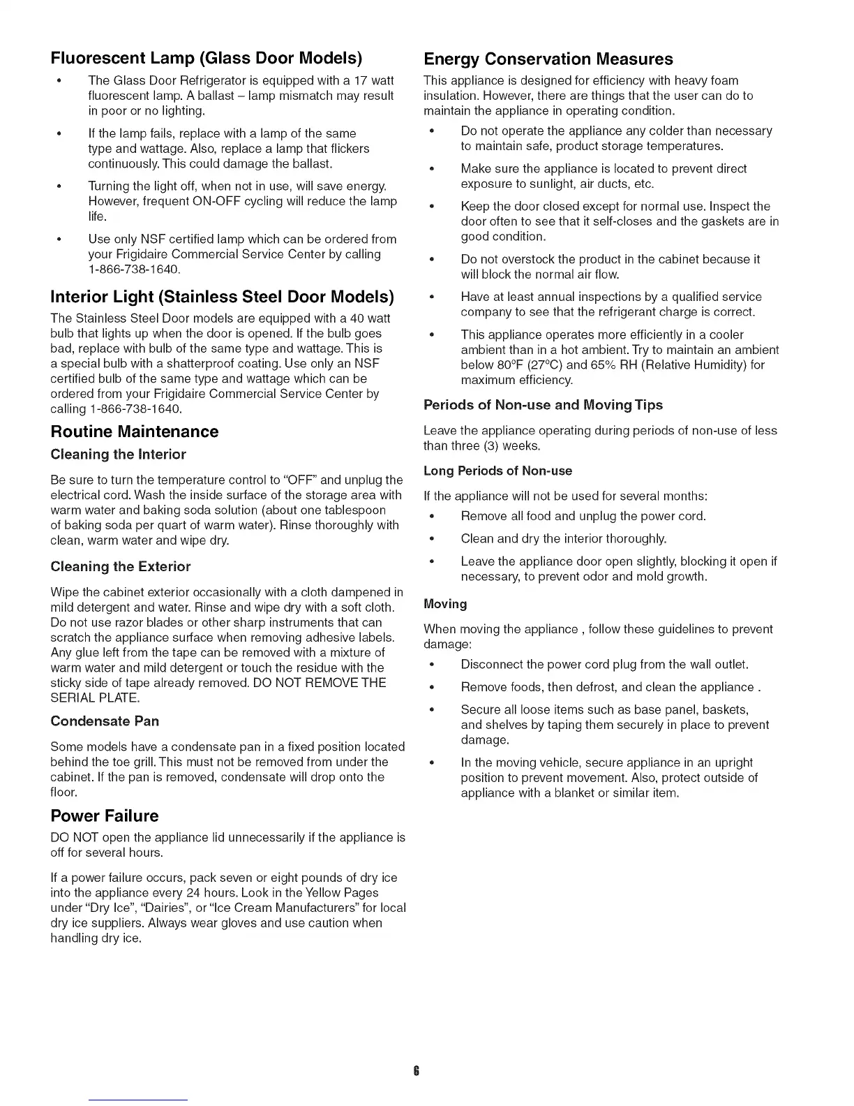 your Frigidaire Commercial Service Center by calling