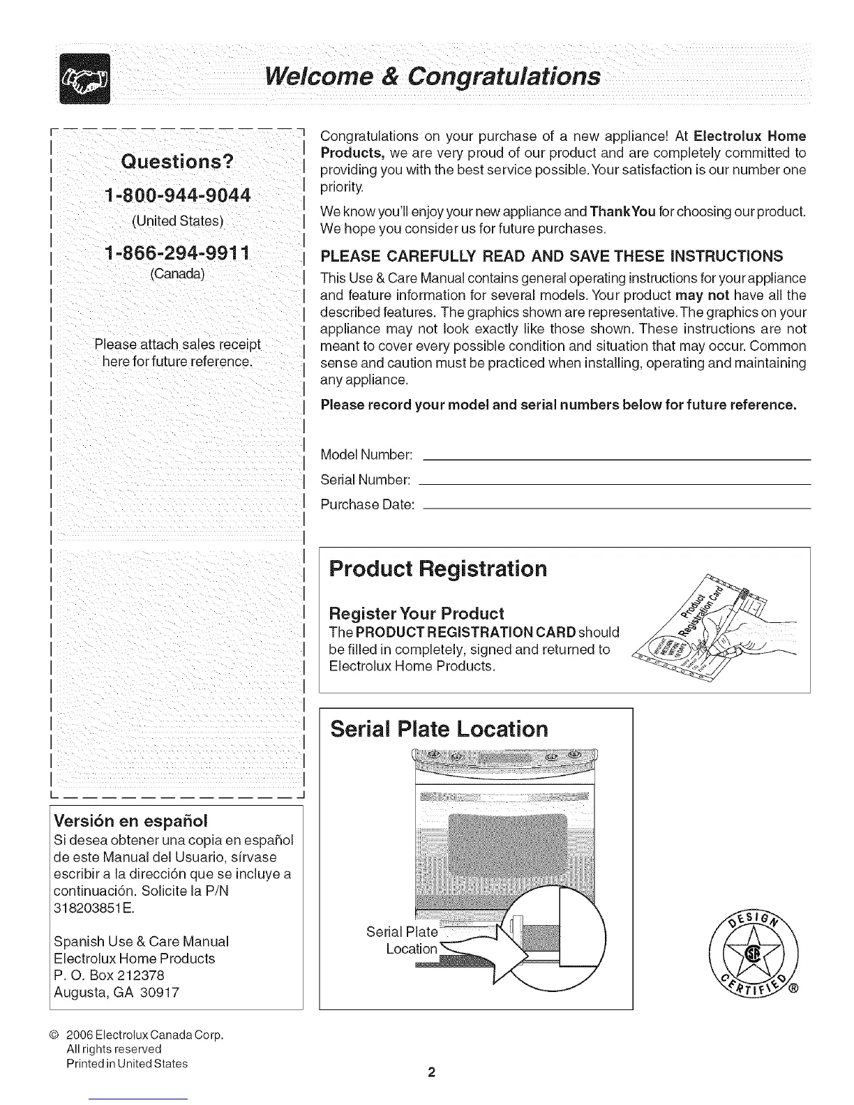 Congratulations on your purchase of a new appliance! At Electrolux Home