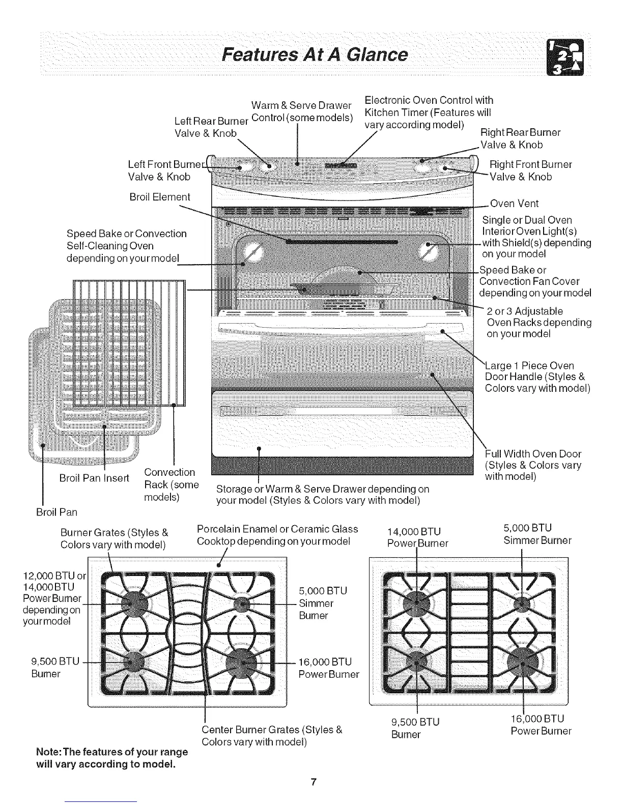 Note: The features of your range