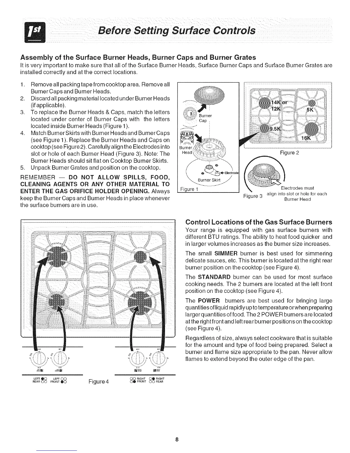 It is very important to make sure that all of the Surface Burner Heads, Surface Burner Caps and Surface Burner Grates are