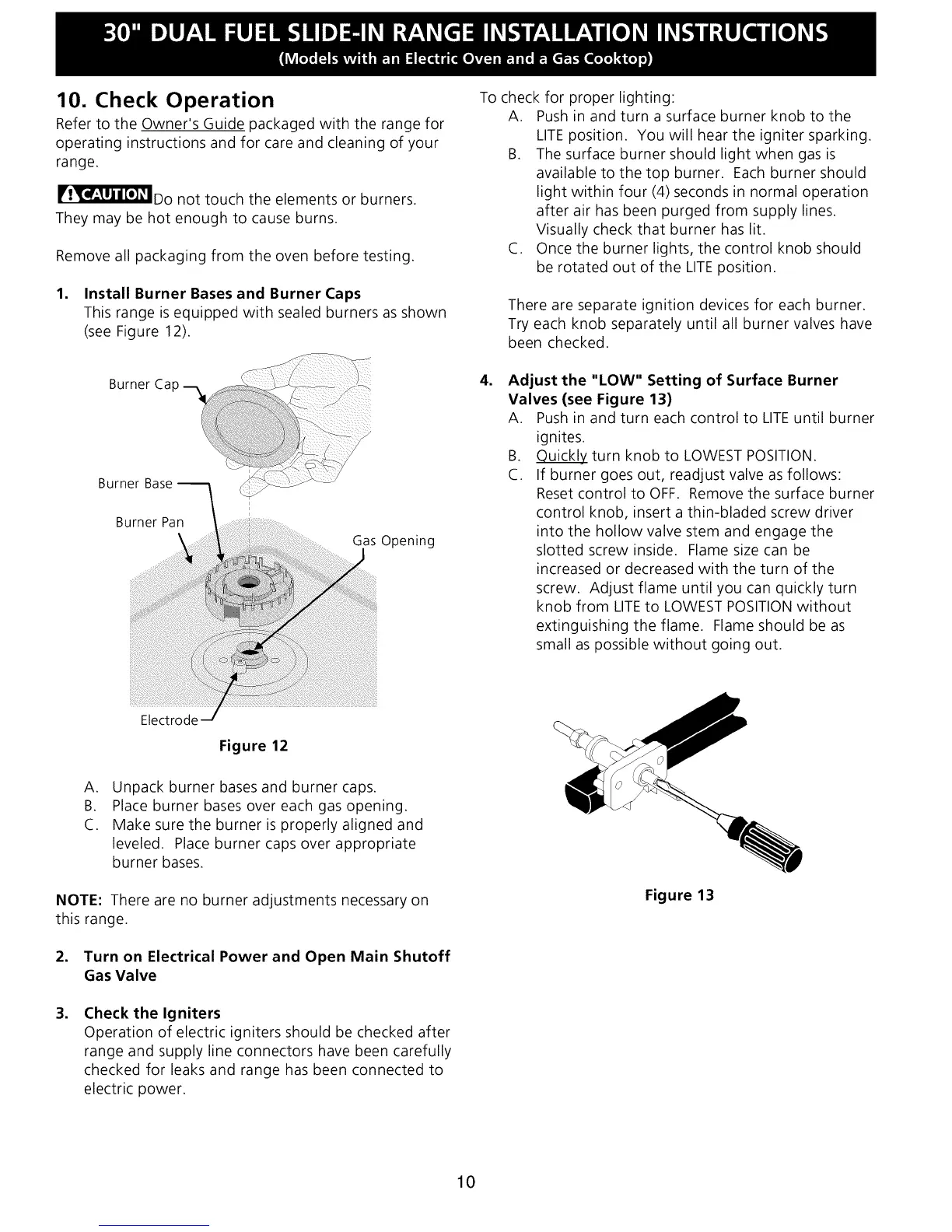 NOTE: There are no burner adjustments necessary on