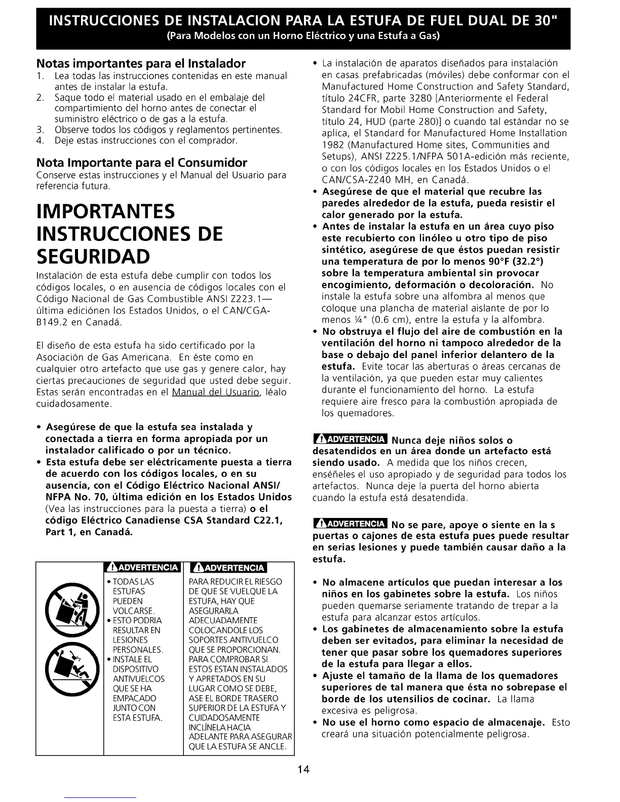 • Esta estufa debe ser eldctricamente puesta a tierra