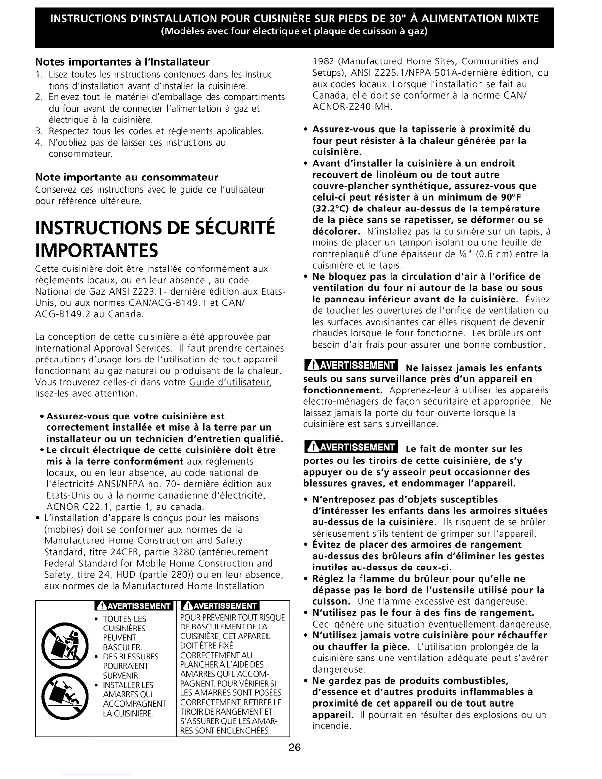 Unis, ou aux normes CAN/ACG-B149.1 et CAN/