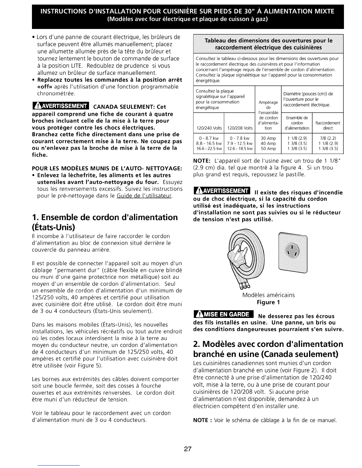 cuisini_res de 120/208 volt. Si aucune prise