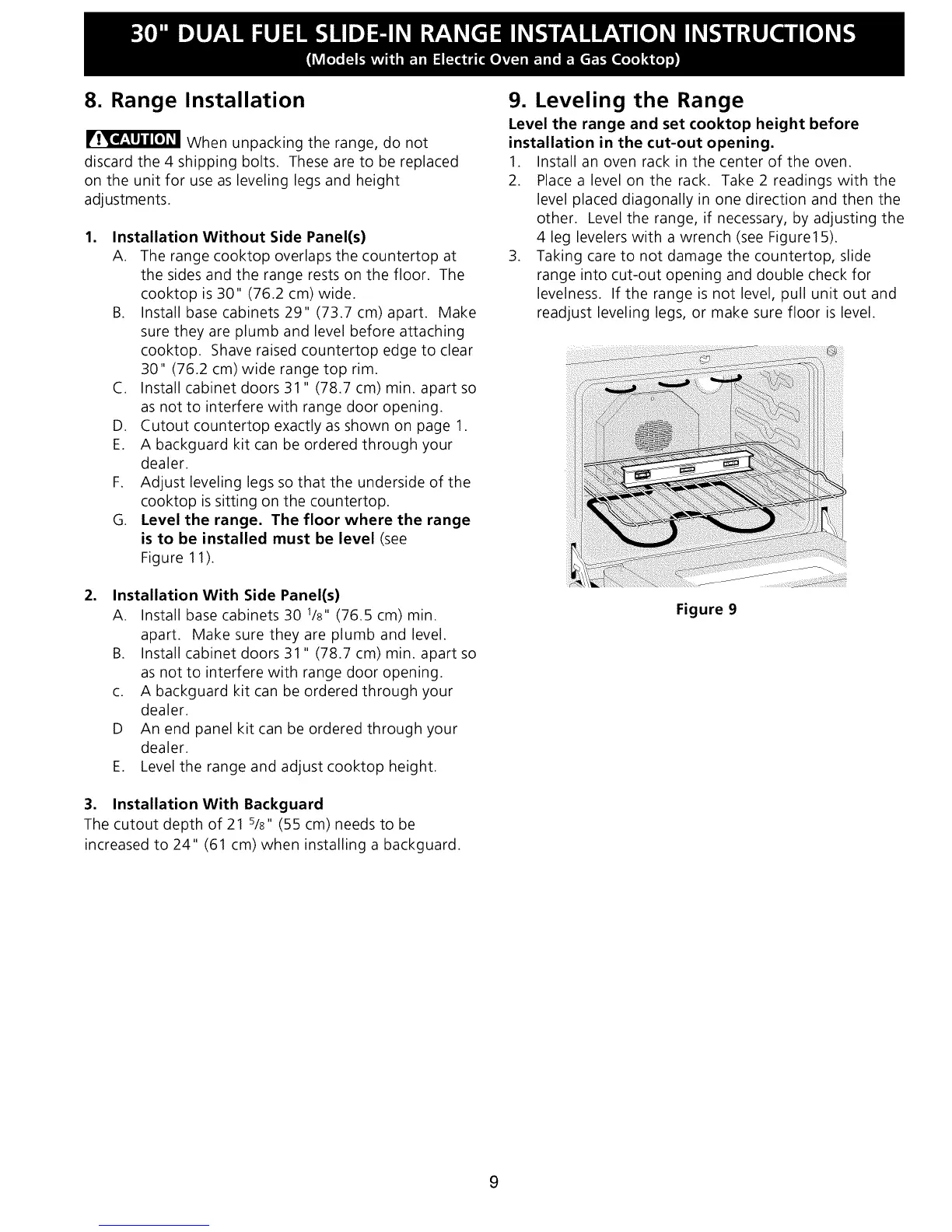 A. Install base cabinets 30 I/8" (76.5 cm) min.