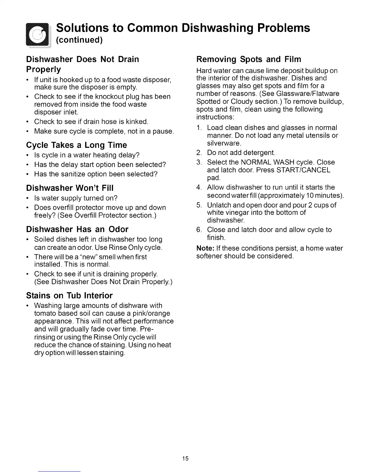 (See Dishwasher Does Not Drain Properly.)