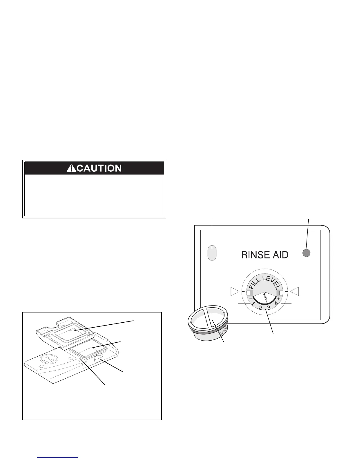 To add liquid rinse aid, turn dispenser cap 1/4 turn