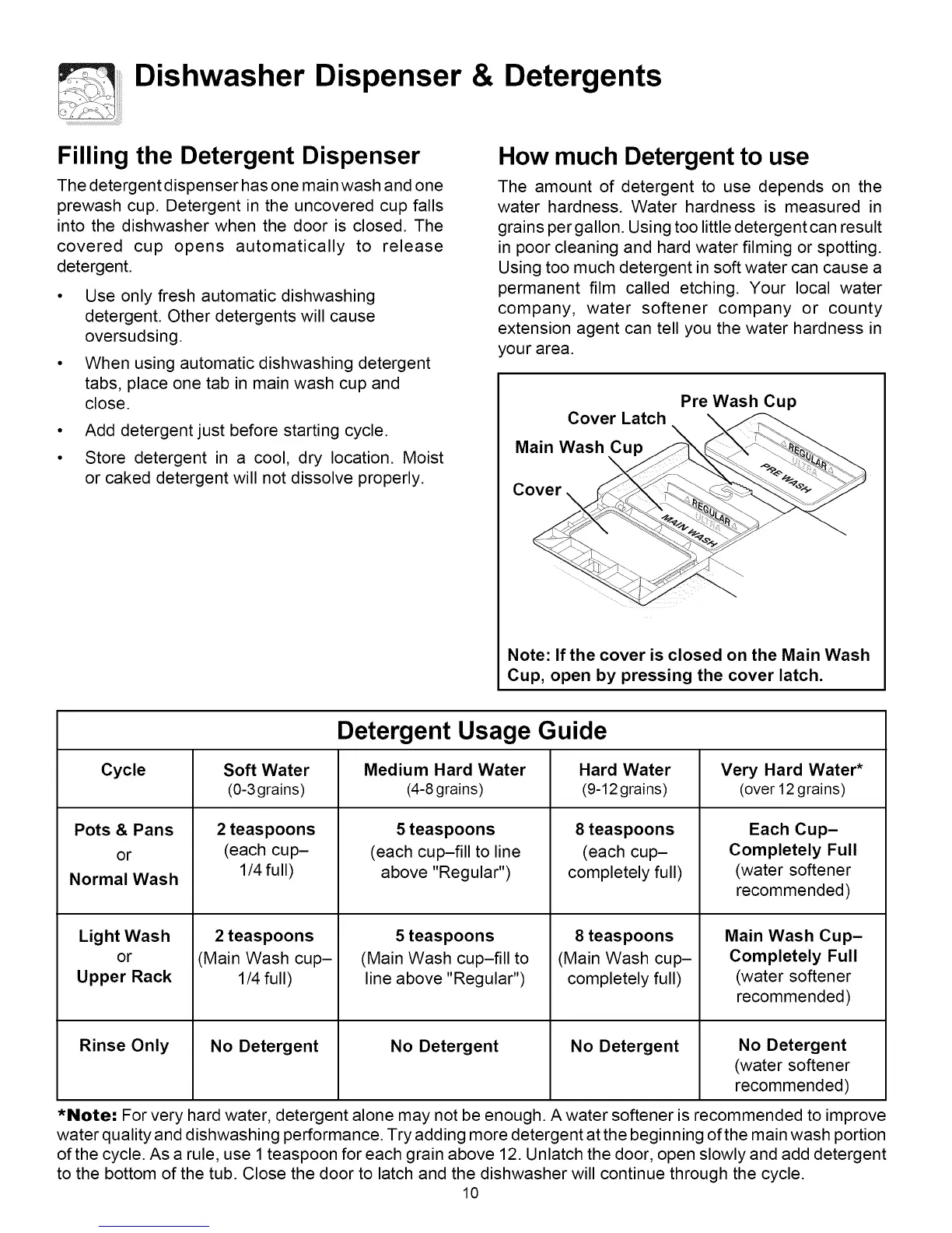 water quality and dishwashing performance. Try adding more detergent at the beginning of the main wash portion