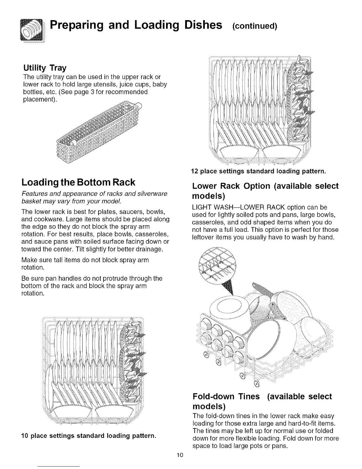 10 place settings standard loading pattern.